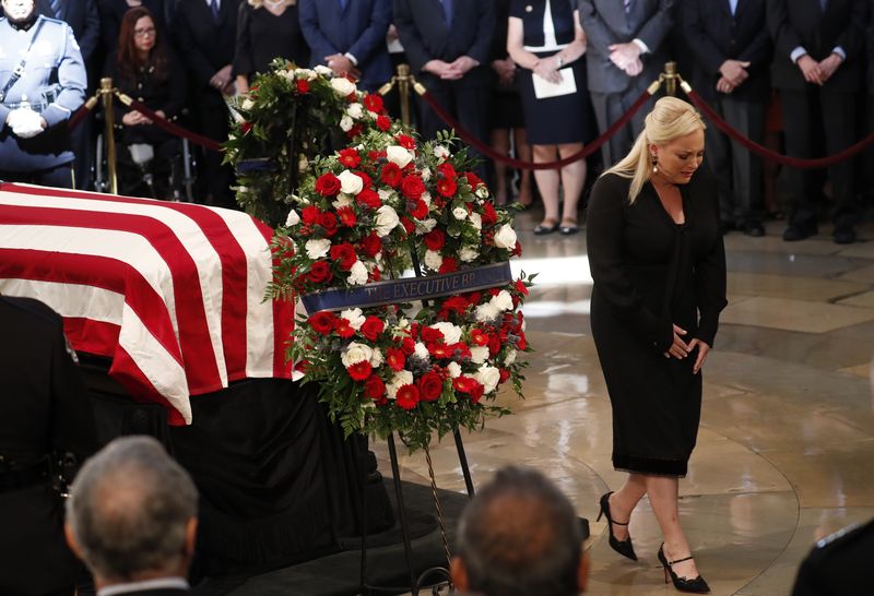 Az egy héttel korábban elhunyt politikust Barack Obama és George W. Bush előző amerikai elnökök búcsúztatták. Obama – aki 2008-ban legyőzte McCaint az elnökválasztáson – azt mondta: McCain jobbá tette a szenátust és az országot, és őt is jobb elnökké tette.