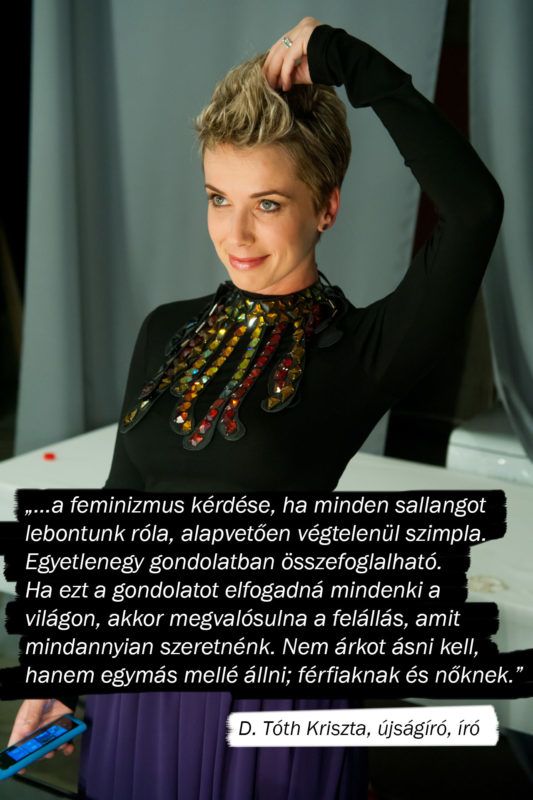 “A kisfiúkat is mélyen érinti az a nyikorgó, ósdi világ, amelyben élünk. Ha jó feministák leszünk, akkor felelősségünk van abban, hogy ne csak magunkat tápláljuk, de a jövő férfijait is, akik a jövő női mellett állnak majd. Azt gondolom, mindez úgy kezdődik, hogy együttérzünk a másikkal, kedvesek vagyunk egymással és tiszteljük egymást.”