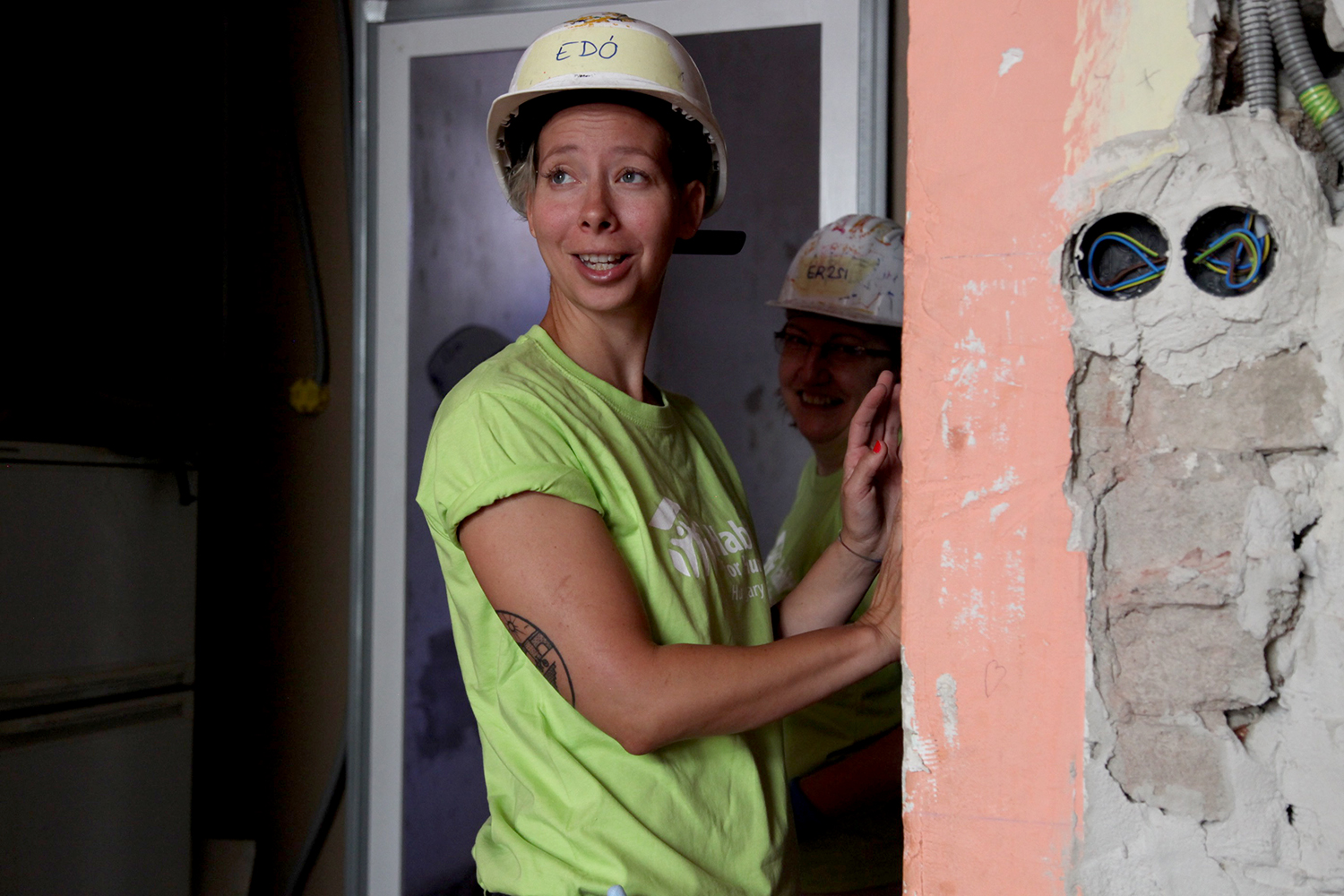 Budapest külső kerületében, Újpest Városkapu környékén egy társasház belső udvarából felújítási munkálatok hangjai szűrődnek ki. Közelebb érve az önkormányzati tulajdonban lévő földszinti bérlakásban tégláig bontott falak fogadnak. Ablak, ajtó még sehol nincs. A közel 50 nm-es hely száz évvel ezelőtt épült polgári lakás lehetett, ez látszik a belmagasságból is. „Gipszkarton-álmennyezetet fogunk kialakítani, hogy takarékosabban lehessen kifűteni. Figyelünk az energiahatékonyságra, a megfelelő szigetelésre is” – magyarázza Farkas Boglárka, a Habitat for Humanity Magyarország kommunikációs munkatársa. A plafonig érő szálló porban védősisakot és pormaszkot viselő szorgoskodó alakokat lehet kivenni. „Önkénteseink éppen gipszkartonoznak – mutat körbe a segélyszervezet munkatársa. – A mai napra közösségi médiában és más fórumainkon hirdettük meg a nyílt önkéntes napot, az itt lévők arra jelentkeztek.”