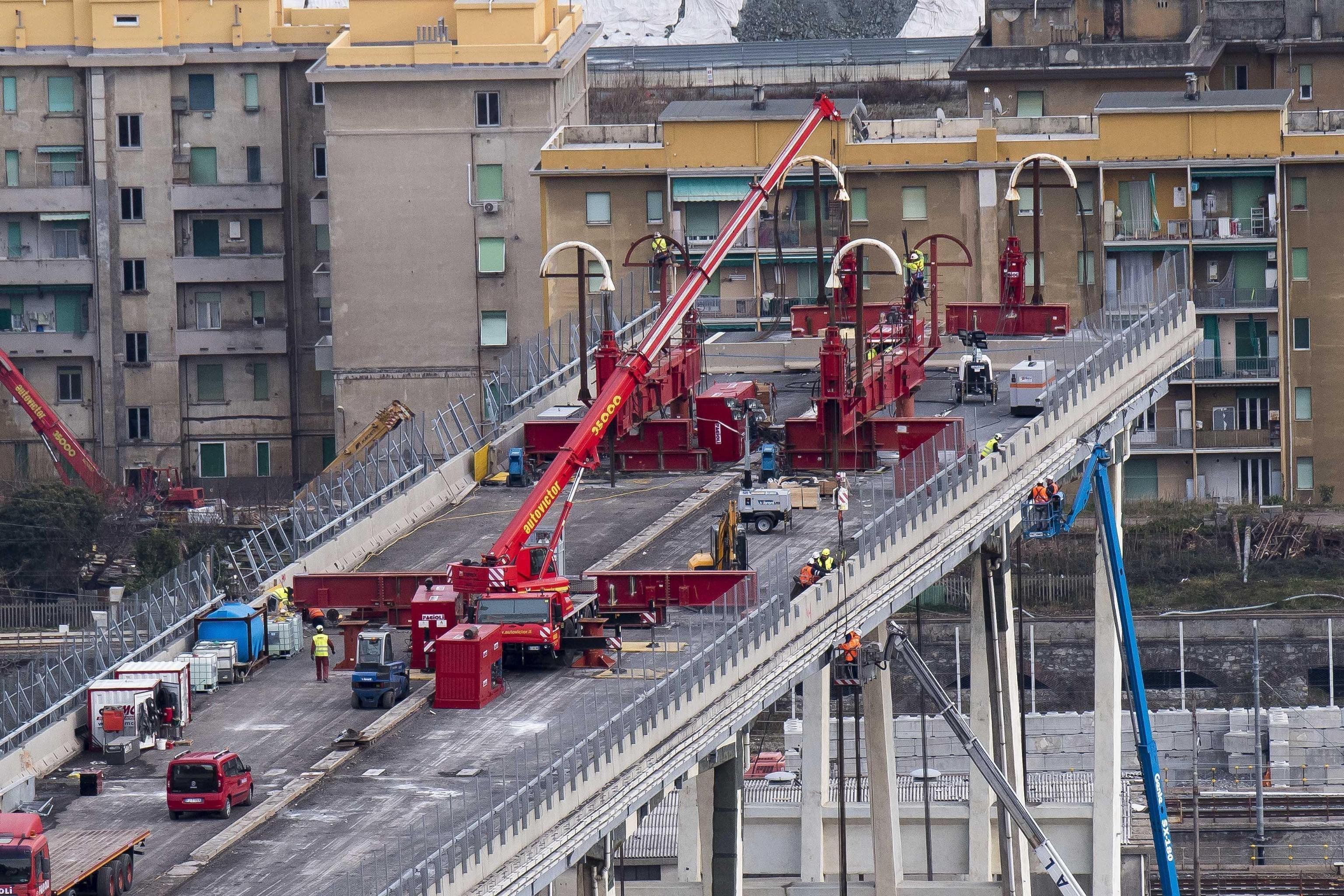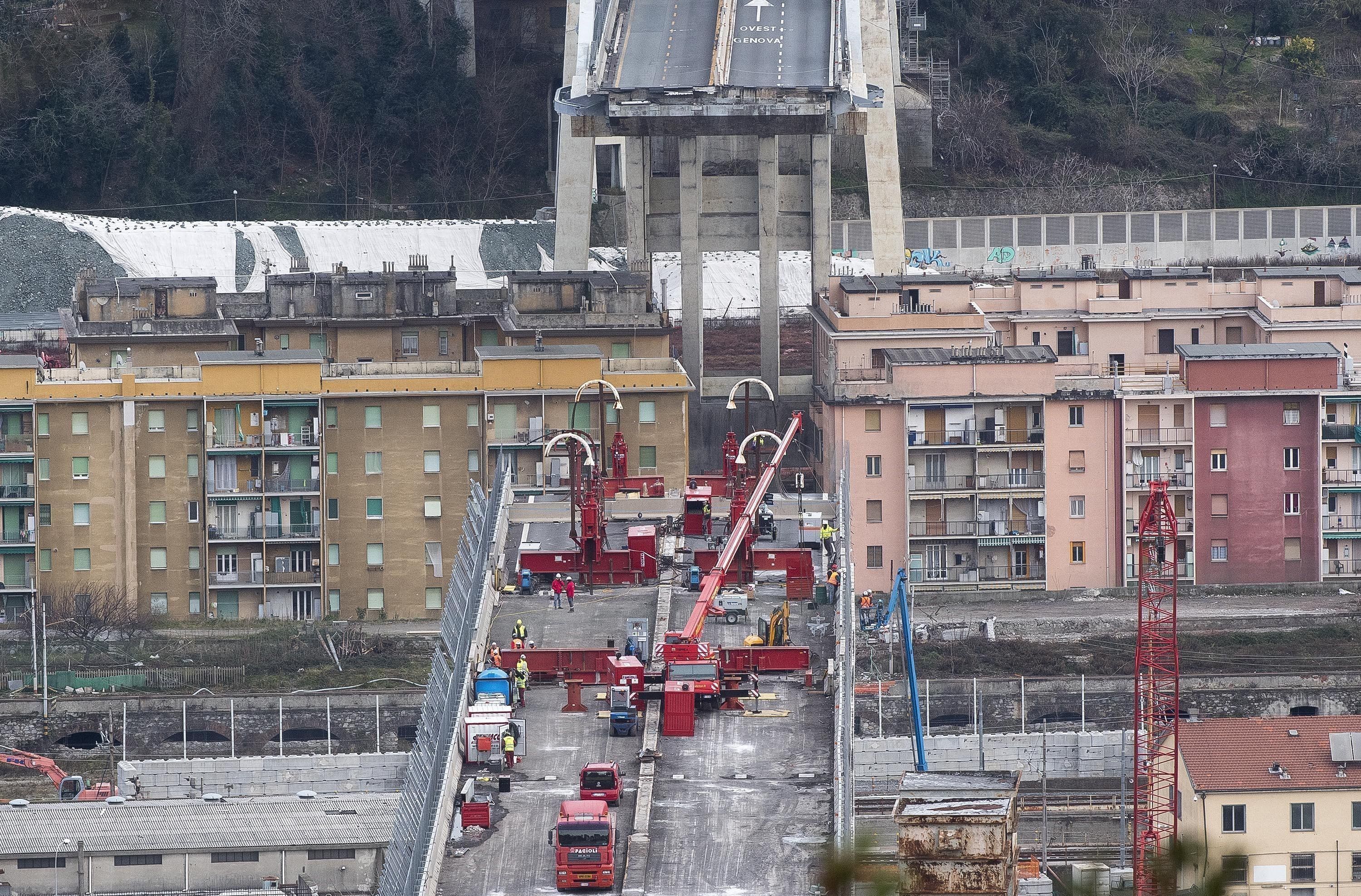 A bontás és építés költségét részben a leomlott hidat üzemeltető autósztráda-társaság fizeti. Az a 600 család, amelyik a hídomlás miatt elveszítette az otthonát, eddig már 200 millió euró támogatást kapott.