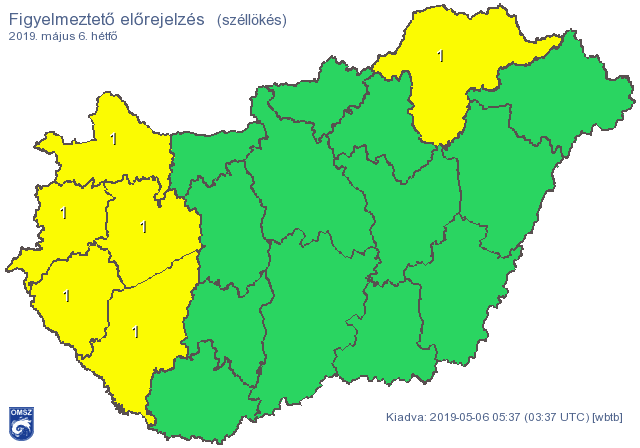 A Dunántúl északnyugati, nyugati tájain és északkeleten (Zemplén, Bodrogköz térségében) gyakran viharos, 60-75 kilométer/órás széllökések lehetnek. Estére a legtöbb helyen 60 kilométer/óra alá mérséklődik a szél.
