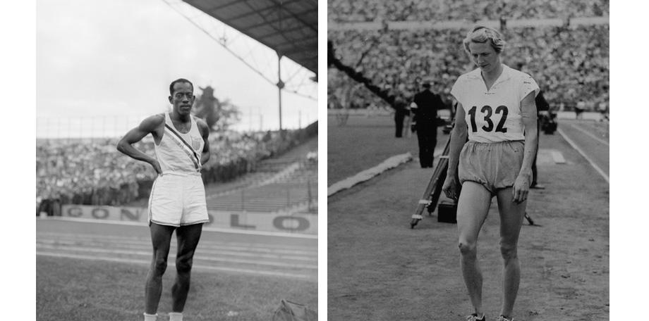 1948. London: A holland Fanny Blankers-Koen (jobbra), a „repülő háziasszony” 4 aranyat is nyert ebben a picit puffos rövidnadrágjában. A férfiak viselete ennél egyszerűbb volt, ahogy a szintén aranyérmes Harrison Dillard (balra) fotóján is látjuk.