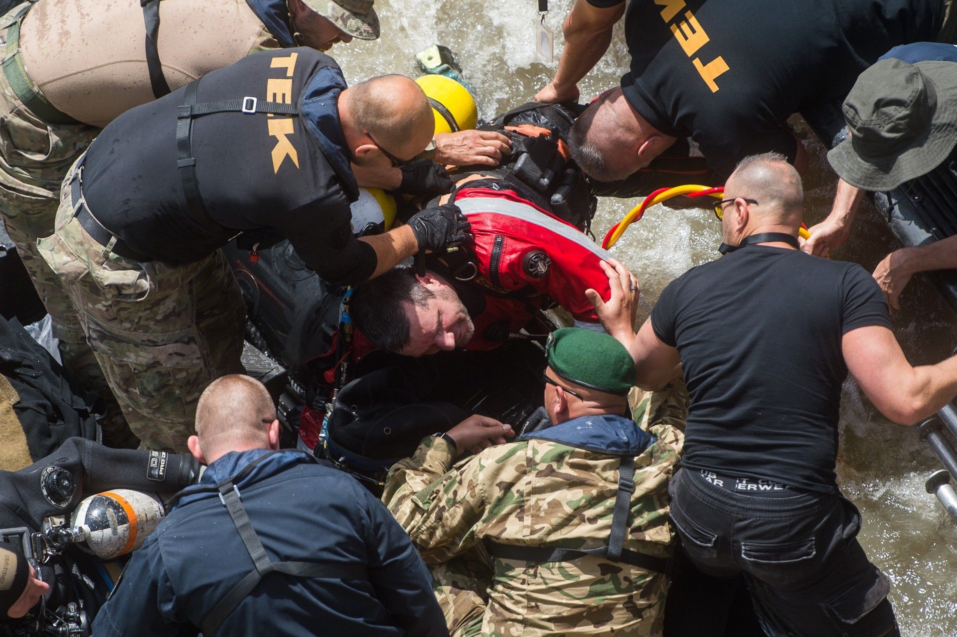 Csütörtökön a pontonhídról merült le egy nehézbúvár két percre, de akkora volt a sodrás, hogy nem tudott leereszkedni a folyómederig. 14 óra körül a híd pillérjének az árnyékából próbált meg lemerülni egy TEK-es búvár. Leeresztettek egy két-három méter hosszú létrát a vízbe, hogy a búvár megnézze, mit lehet csinálni a mostani körülmények között. Amikor leért a létrán, akkor leugrott a mederbe, de a sodrás miatt esélye sem volt arra, hogy megközelítse a roncsot – írja a 24.hu.