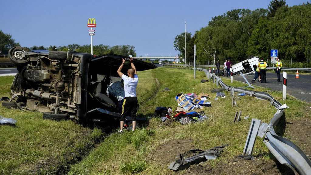 Tetejére borult személyautó az M1-es autópálya Győr felé vezető oldalán, a 93-as kilométernél, Bábolna térségében 2019. június 9-én reggel. A belső forgalmi sávban haladt egy német rendszámú gépjármű, amely jobbra sodródott és oldalról nekiütközött a külső sávban haladó bolgár kisbusznak. A kisbusz az oldalára borult. A járműben nyolcan utaztak, közülük ketten súlyosan, hatan könnyebben megsérültek.