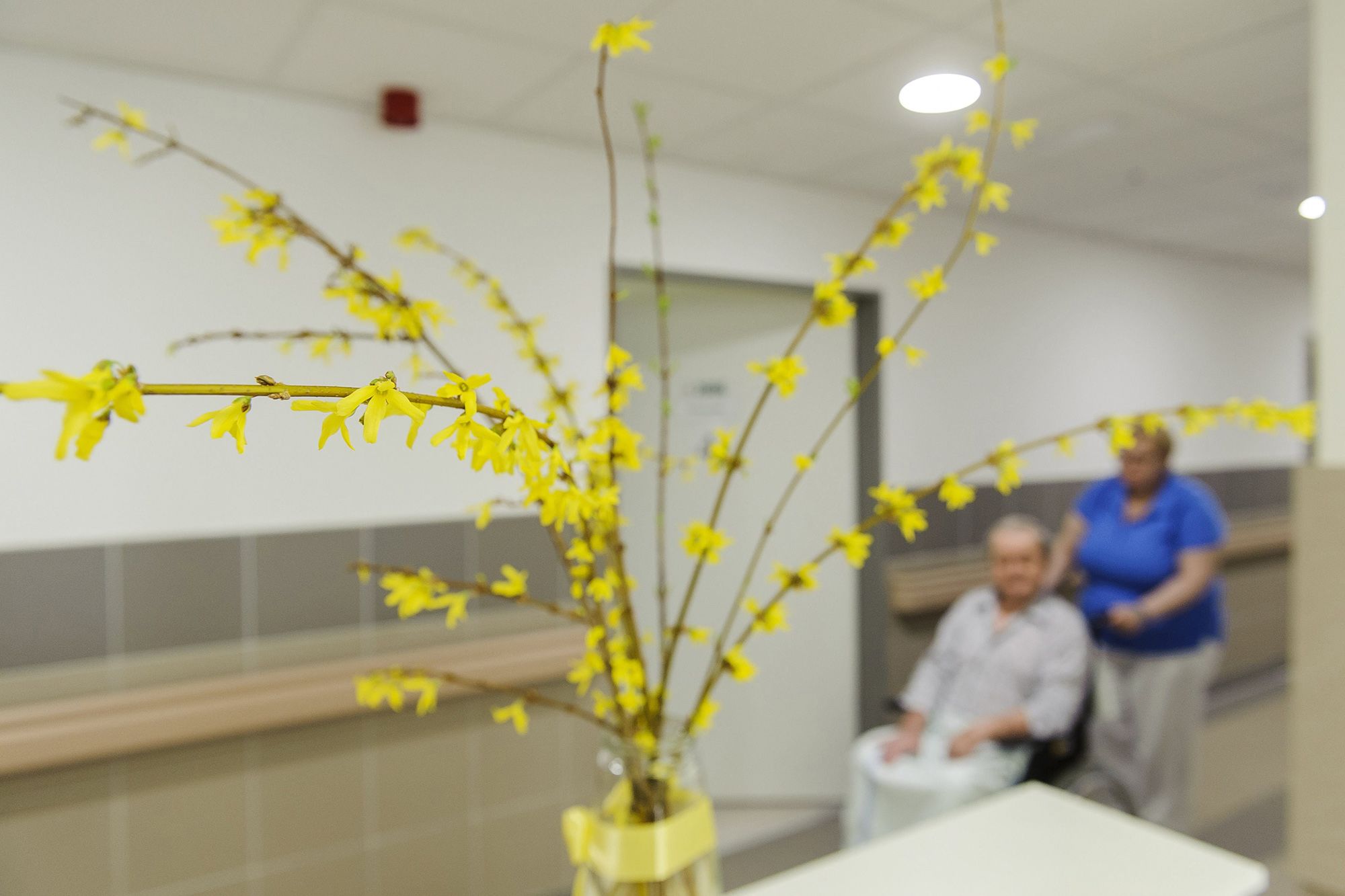 Egy ápoló tol egy kerekesszékes beteget a debreceni Kenézy Gyula Kórházban kialakított hospice-ház folyosóján. MTI Fotó: Czeglédi Zsolt