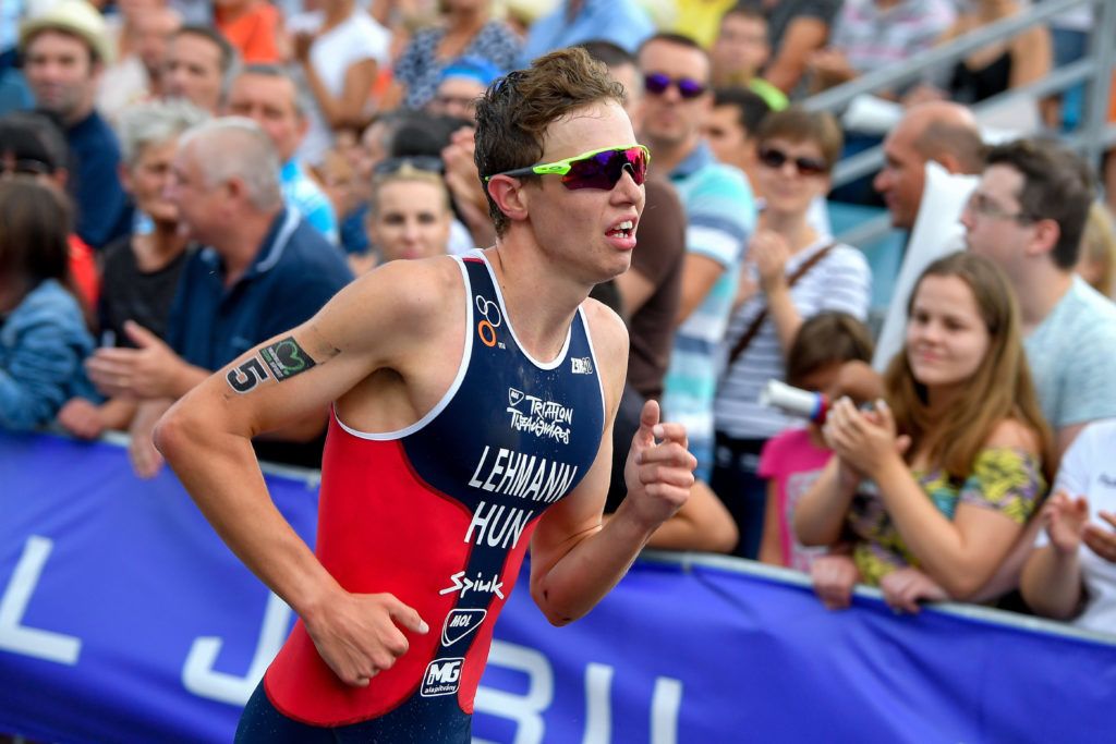 Lehmann Csongor a triatlon világkupa-sorozat tiszaújvárosi állomásának férfi döntőjében (Fotó: MTI/Czeglédi Zsolt)