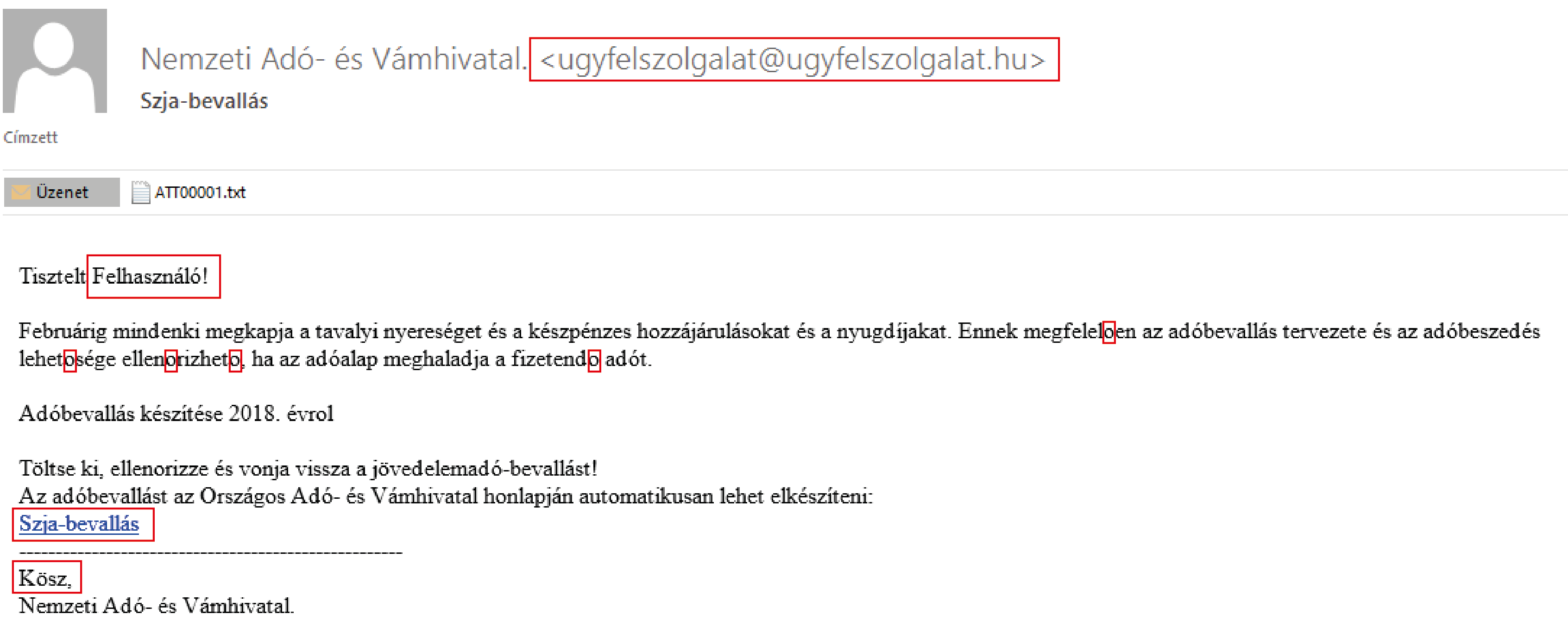 A NAV nevében írt, az adóvisszatérítés lehetőségére felhívó elektronikus leveleket, SMS-eseket hibás nyelvi fordulatok, tegező megszólítás, értelmezhetetlen szövegrészletek jellemzik.