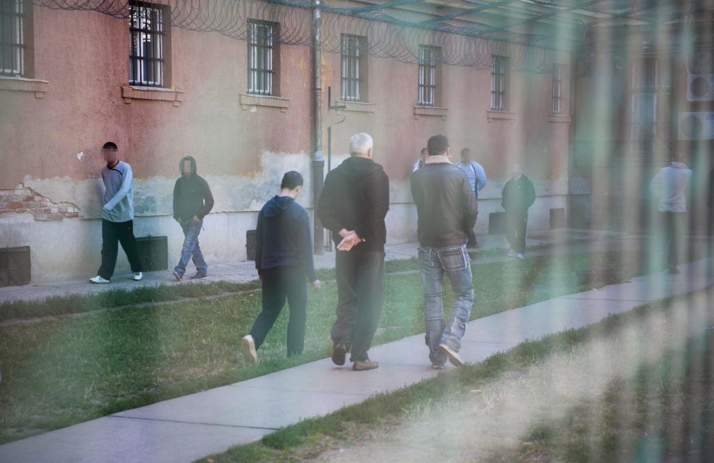 Fogvatartottak sétálnak a Heves Megyei Büntetés-végrehajtási Intézet udvarán (Képünk illusztráció. Fotó: MTI / Cseke Csilla)