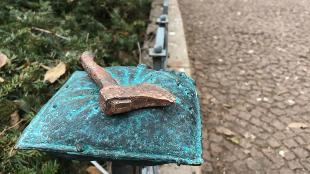 A mai napon Kolodko Mihály saját eszközeivel válaszolt az erőszakos happeningre: felszerelt ugyanoda egy, az usankához hasonlóan ugyancsak díszpárnára fektetett baltát ábrázoló miniszobrot.
