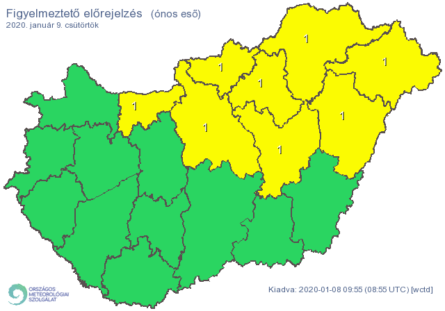 Előrejelzésükben azt írják: a csütörtökre virradó éjszaka második felétől csütörtök délutánig várható vegyes halmazállapotú csapadék az ország északi, északkeleti harmadában.