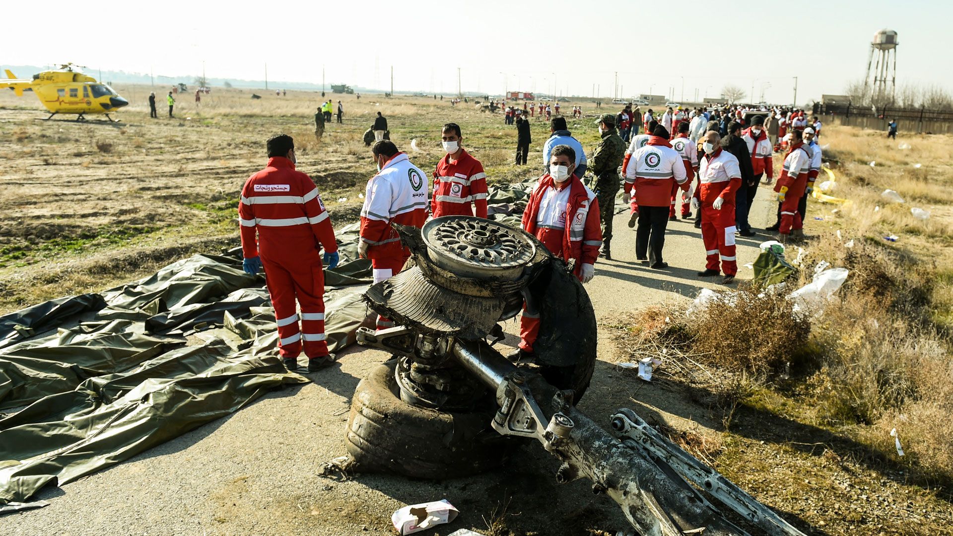Iráni mentőalakulatok az ukrán gép roncsainál (Fotó: Getty Images)