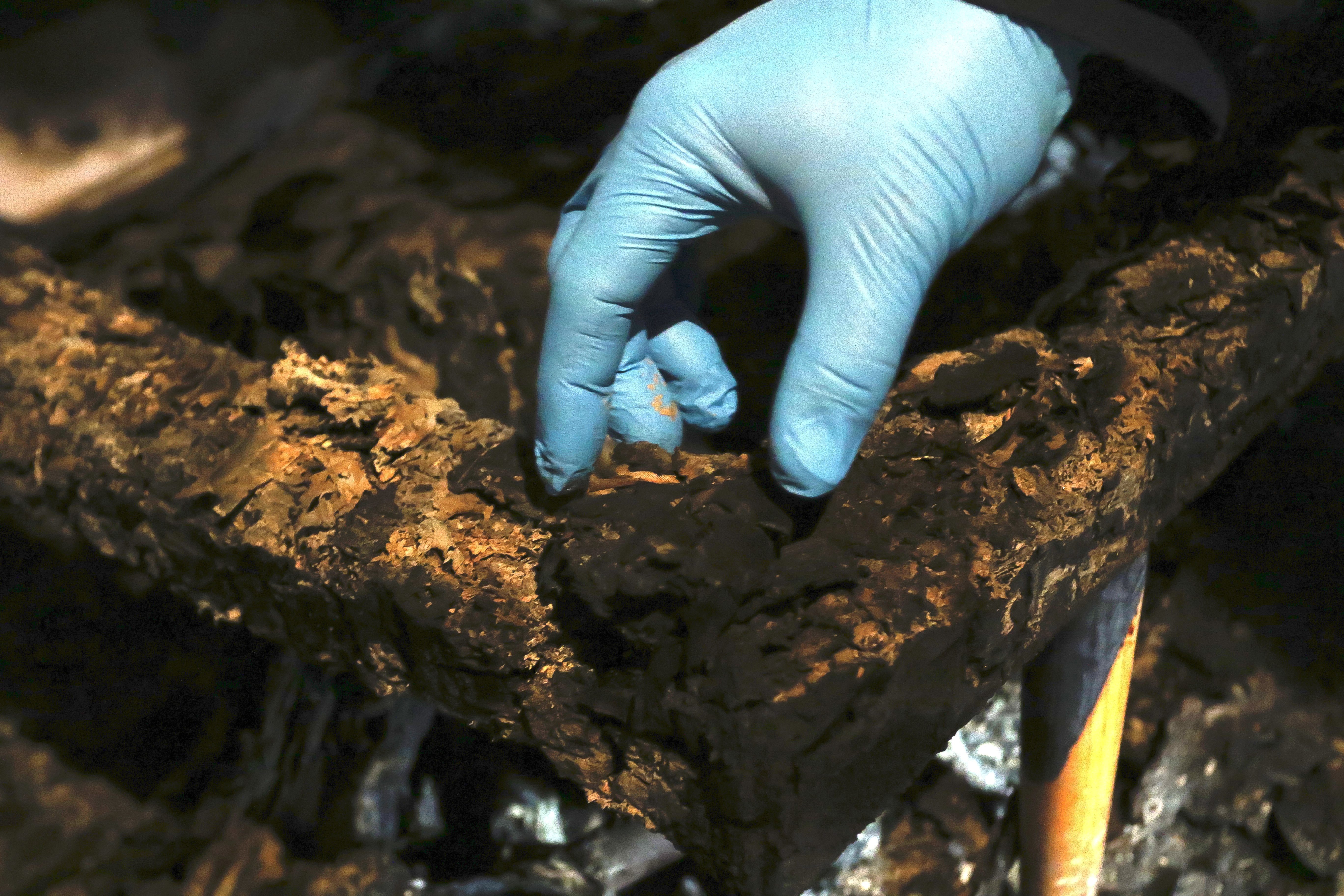 Elszenesedett ágy egy családi házban a Pest megyei Kőröstetétlenen. A kiégett szobában egy összeégett féri holttestét találták meg a tűzoltók (Fotó: MTI Fotó / Bugány János)