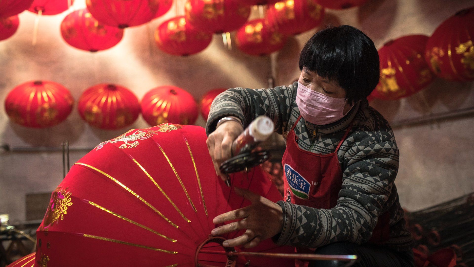 A 2019. január 18-i képen hagyományos lampiont díszít egy nő a közelgő kínai holdújévre egy magánkézben levő üzemben, az észak-kínai Hopej tartománybeli Tuntou faluban (Fotó: MTI / EPA / Roman Pilipej)