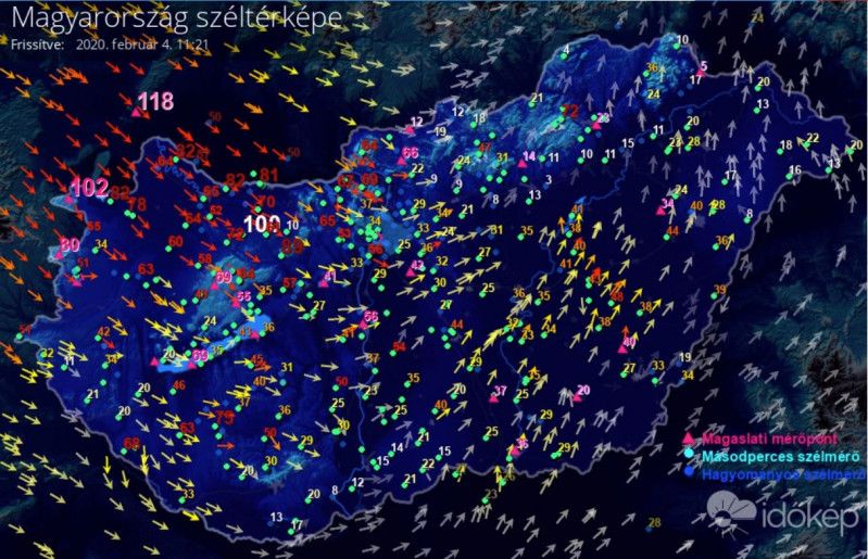 Északnyugaton a legerősebb széllökések meghaladják a 80 km/h-t, de Sopronban 114 km/h-s, Bakonyszombathelyen 100 km/h-s széllökést is mértünk, a szlovák fővárosban pedig a legerősebb széllökés elérte a 118 km/h-t.