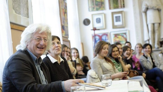 Esterházy Péter rendhagyó irodalomórát tart egy gimnáziumban 2013-ban – Fotó: MTI