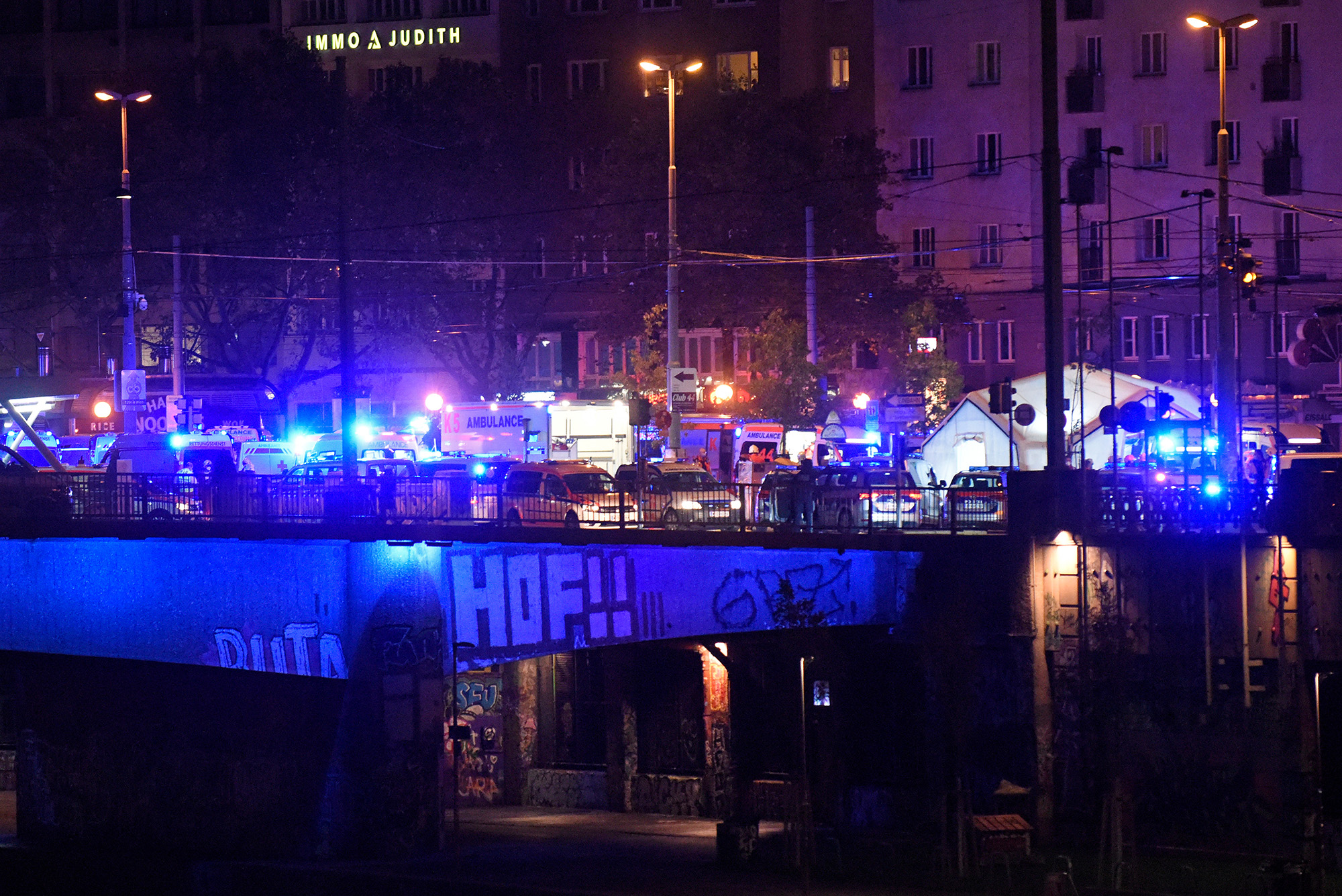 A támadás hétfőn este nyolc órakor vette kezdetét a Seitenstettengasse utcai zsinagóga környékén, az imaházban ekkor nem voltak emberek, így egyelőre nem tudni, hogy ez volt-e a célpont. Az erősen felfegyverkezett merénylők több helyszínen sokakat meglőttek. A pontos indítékuk még nem ismert, a hatóságok azonban terrortámadásként kezelik a történteket.