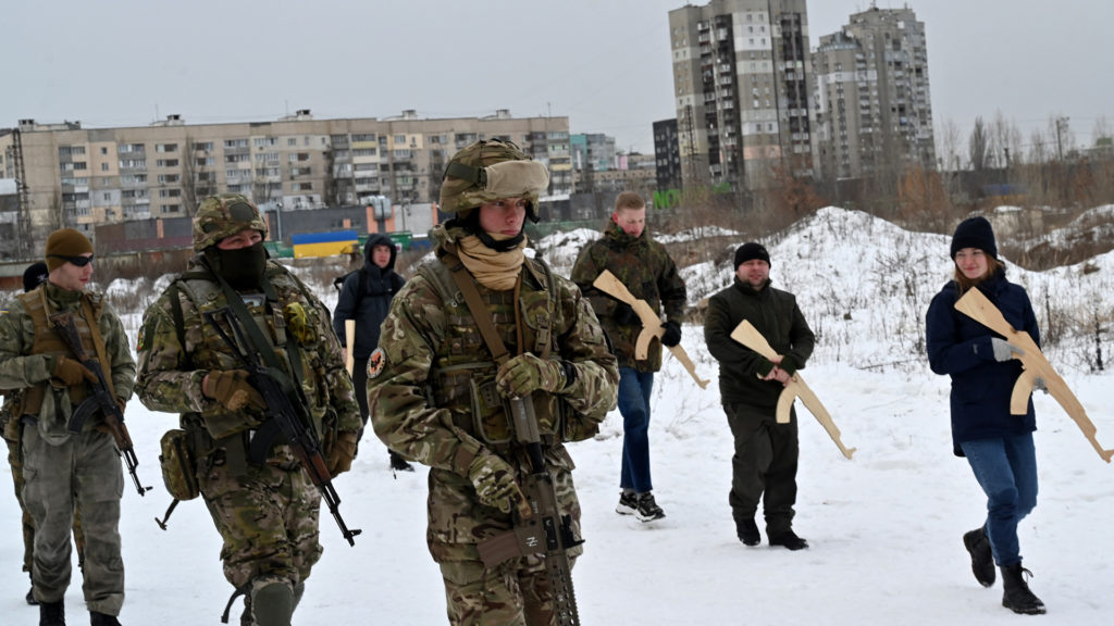 Ahogy Volodimir is mondja bőven akadnak olyan civil önkéntesek, akik védelmi feladatokat kívánnak ellátni, ők azok, akik jelenleg harci öltözékben, fegyverek fa másolatával tréningeznek a Területi Védelmi Erők részmunkaidős tartalékosaiként. Az NPR cikke szerint a kiképzést 2014 után hozták létre, amikor Oroszország elfoglalta és annektálta a Krímet. Tavaly azonban a gyakorlatokat megnyitották a hétköznapi polgárok előtt is, az ország stratégiai védelmi tervének részeként egy esetleges orosz invázió esetére, hogy elősegítsék a népi ellenállást, ha az ukrán hadsereg túlterhelt lenne. A tanoncok lőni és kúszni tanulnak, gerillataktikákat sajátítanak el egy részben felépített cementgyár területén.