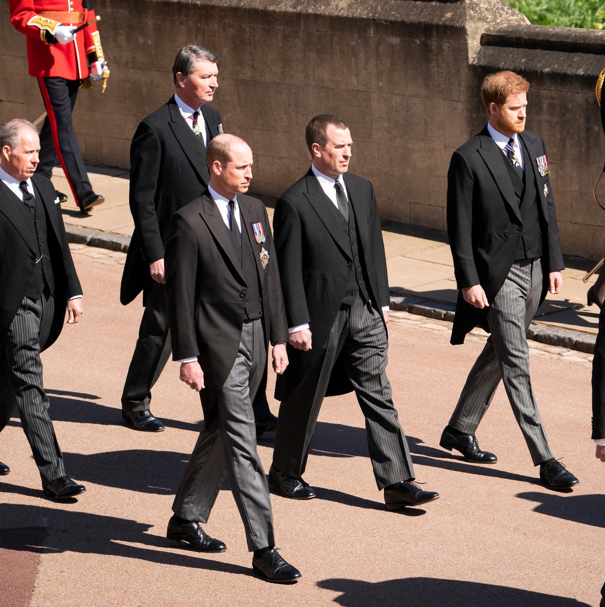 Vilmos herceg, Harry herceg és Peter Phillips Fülöp herceg temetésén (Fotó: Profimedia)