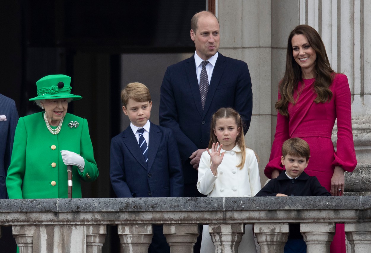 Vilmos herceg, Katalin hercegnő, II. Erzsébet és a herceg gyermekei 2022-ben a Buckingham-palota erkélyén (Fotó: Profimedia)