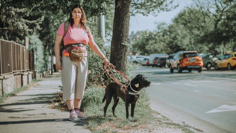 Katalin és vakvezető kutyája, Zenit – Fotó: Baráthegyi Vakvezető Kutya Iskola
