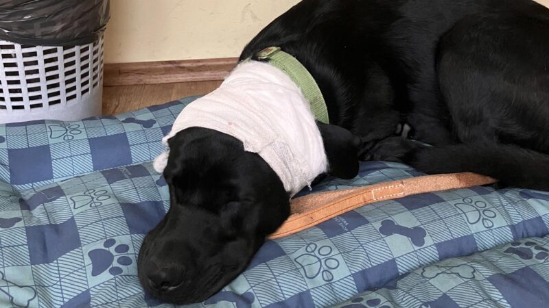 Zenit fülén a sérülést össze kellett varrni – Fotó: Baráthegyi Vakvezető Kutya Iskola