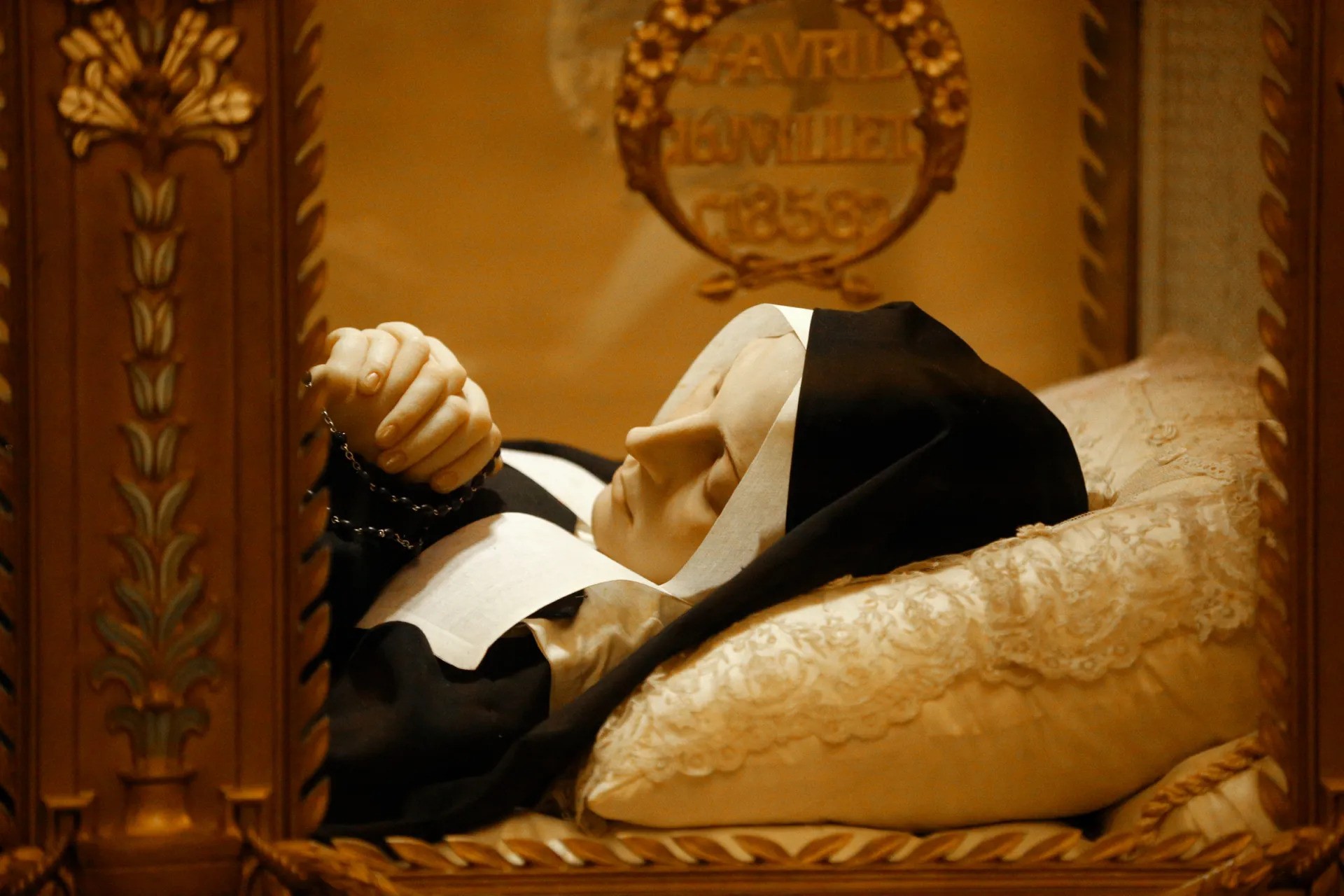 Egy másik 19. századi francia apáca, az 1876-ban elhunyt Labouré Szent Katalin, aki egy misztikus vízió során személyesen a Szűzanyától kapta meg a Csodálatos Érmet, szintén romolhatatlan: ő is egy üvegszarkofágban nyugszik egy párizsi kápolnában.