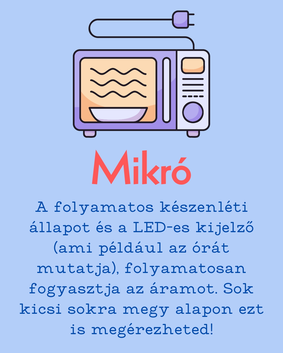 Vannak azonban olyan berendezések is mindannyiunk otthonában, amik szép csendben akkor is növelik a villanyszámlát, ha nem hozzuk őket működésbe. A sok kicsi pedig, mint tudjuk, igenis sokra megy!