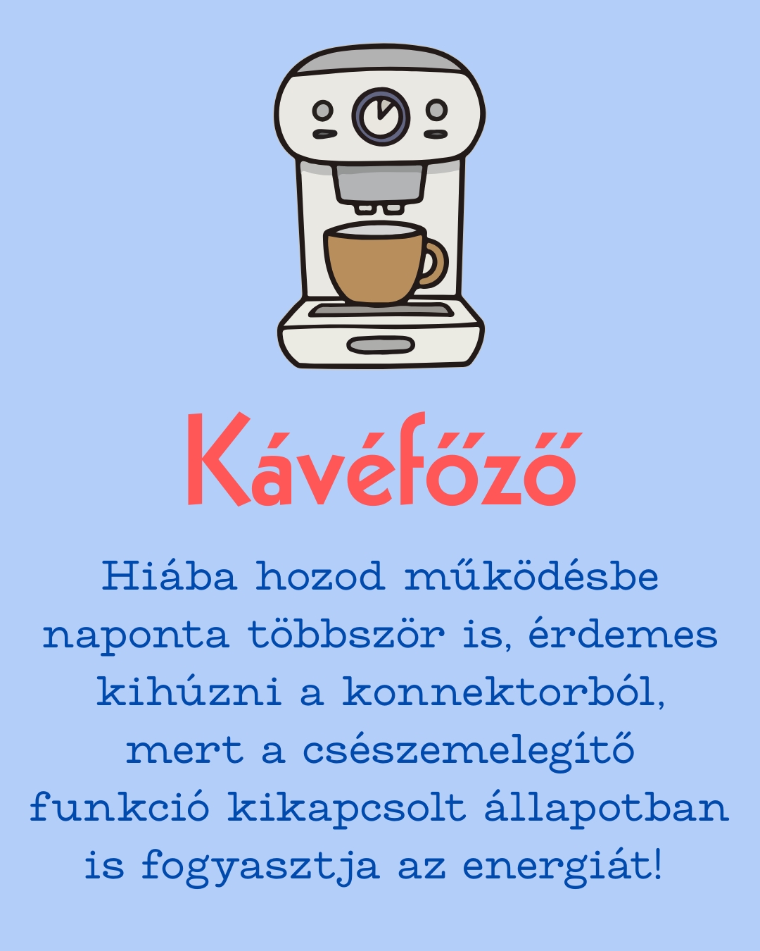 Ha tudod, hogy melyek ezek az eszközök, egy kis odafigyeléssel hosszú távon érezhetően csökkentheted a villanyszámládat. Elég, ha a használatukat követően egyszerűen kihúzod a konnektorból ezeket a láthatatlan áramfalókat!