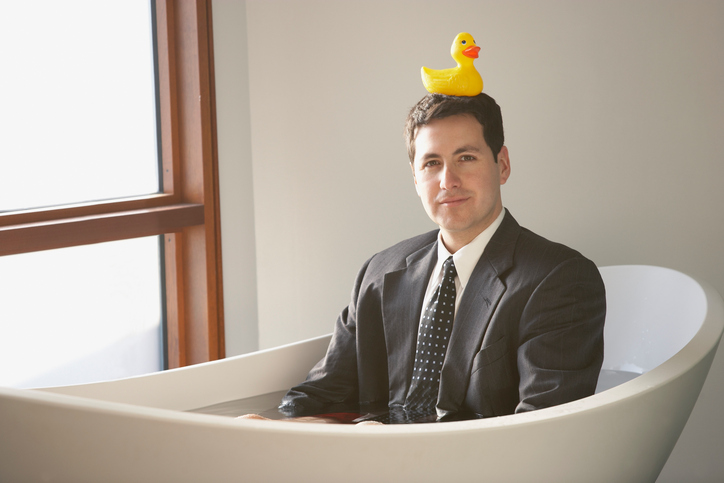 Ez a rokonszenves öltönyös úriember, fürdés közben