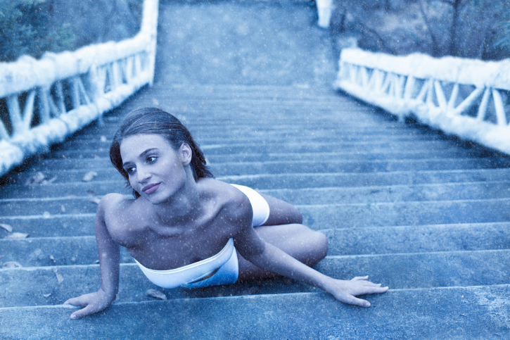 Ez a szerencsétlenül járt lány a jeges lépcsőn