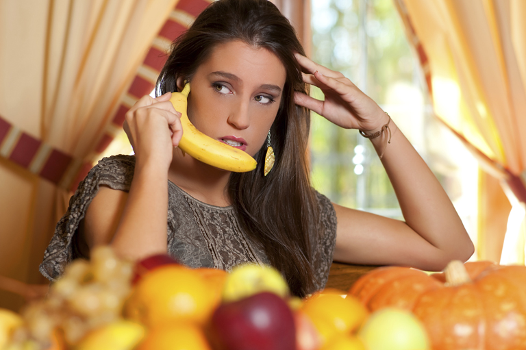A nő aki egy banánnal próbál telefonálni