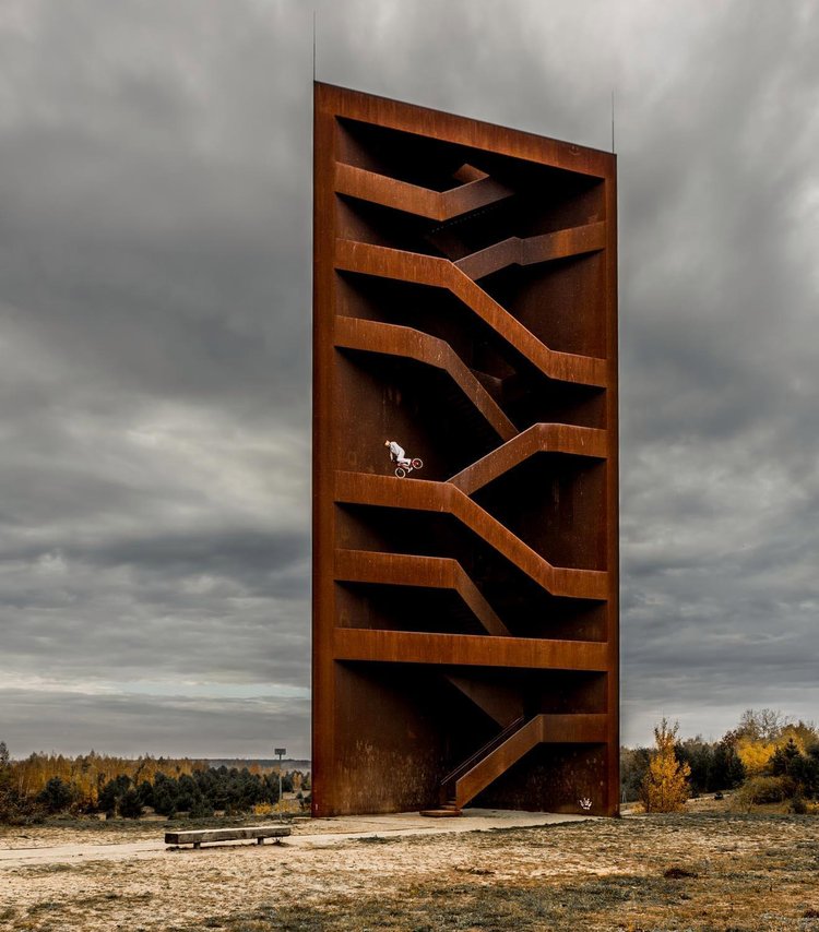 A német Lorenz Holder és a BMX-es Senad Grosic egy másik színtéren: egy rozsdás kilátóban a németországi Senftenbergben.