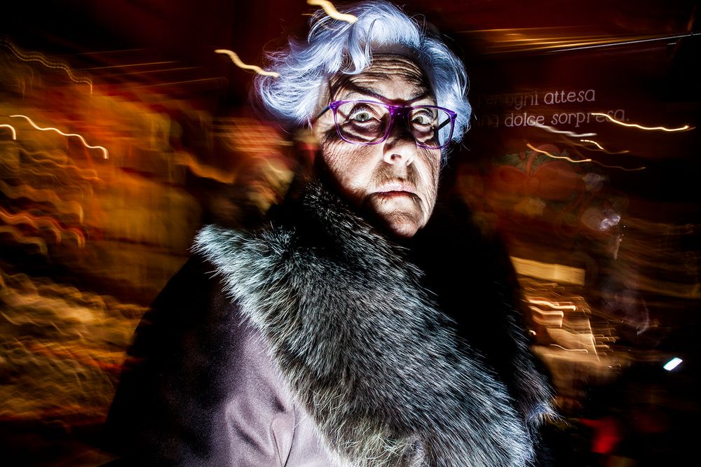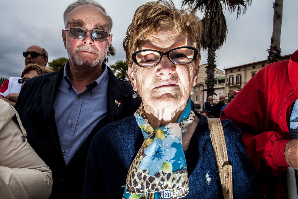 A legtöbb ember kizárólag szerencsétlen képeket tud lőni másokról, de hogy egy profi fotós is ezt tegye, az kicsit szokatlan. Márpedig Salvatore Matarazzo kizárólag vakuval, előnytelen szögből, illetlenül közelről, ha lehet, akkor arcba fotózza az embereket, hogy tükröt mutasson hiúságuknak. A szerencsétlen beállítások, a vaku váratlan villanása és a hirtelen sokk drámai iróniával fűszerezi képeit, elképesztően groteszk festményt szül az emberről.
