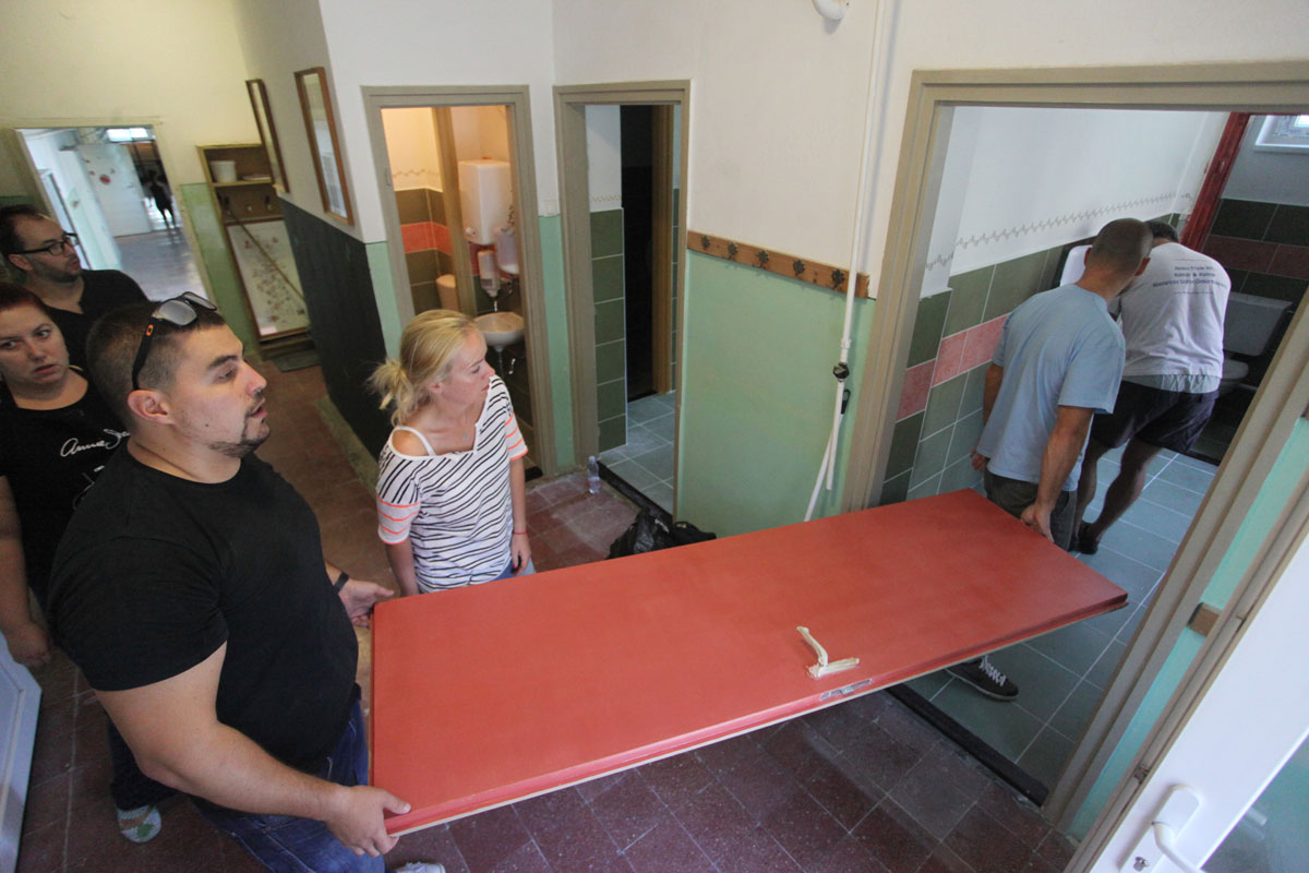 A kampány során bemutattuk a döntőbe került 10 iskolát, mindegyik településen jártunk, kicsit mindenhol megszakadt a szívünk, és egy idő után nem volt kérdés: mi is örökbe fogadunk egy mosdót. Az pénzadományon túl vállaltuk, hogy személyesen is segítünk, ha tudunk. Az azonban hamar kiderült, hogy egy csapat újságíró és menedzser kezébe adni a hidegburkolást és a vízvezeték-szerelést nemcsak értelmetlen vállalkozás lenne, de veszélyes is. Úgyhogy marad a festés, egy augusztusi napon az NLCafé szerkesztősége és a Centrál Médiacsoport néhány lelkes önkéntese leutazott Gamásra, és festettünk, ameddig csak bírtunk… Íme: