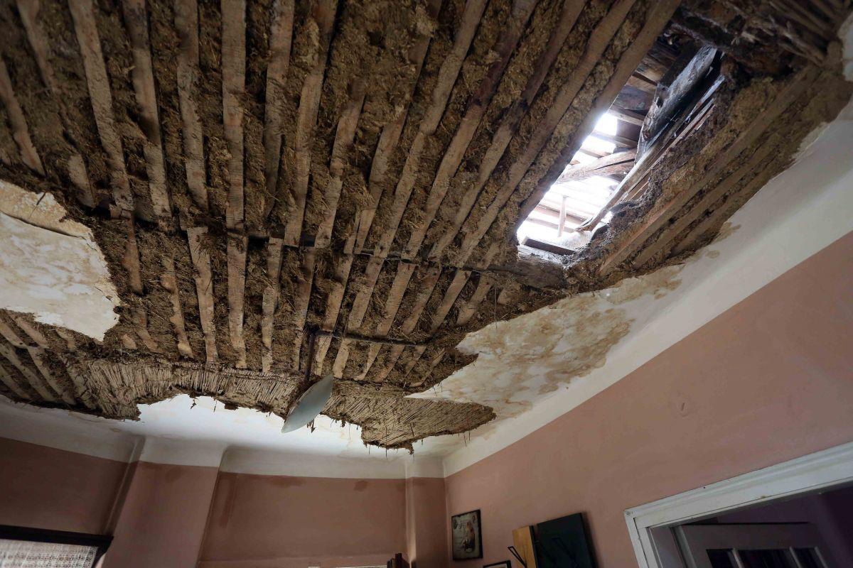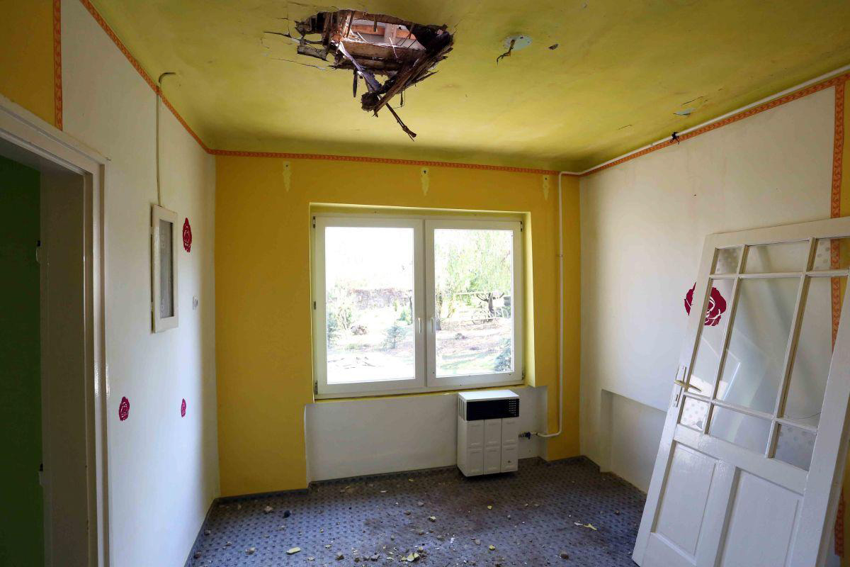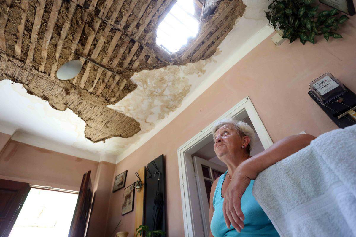 A vihar idején Ágnes fia egyedül volt otthon, mikor szinte egyszerre szakadt le a mennyezet több szobában. A fiú lekapcsolta a villanyórát, és hívta édesanyját, aki Miskolcon dolgozott. „Negyed háromkor hívott András, hogy anya, baj van. Elkértem magam a munkából, és azonnal jöttem, de az út több mint két óra ide. Mikor hazaértem, és megláttam, mi van itt, azt gondoltam, felakasztom magam. Nem értettem, mi történt: meleg nyár van, és én bokáig állok a jégben. Elmentem dolgozni, sütött a nap, hazajöttem, sütött a nap, a kettő között tönkrement az életünk.” A konyhában, a nappaliban és a hálószobában lyuk tátong a tetőn, a padlón a födémből lehullott sár, kukoricacsutkák, fadarabok. Nem olyan rég még a födém részei voltak. „Ez tegnap óta esett le. Ahogy a statikus mondta, megszívta magát vízzel a vályog, és akkora súly nehezedik a gerendákra, hogy nem bírják. Ha kiszárad, akkor omlani fog, közben pedig repednek a falak. Összedől, mint az életünk.”