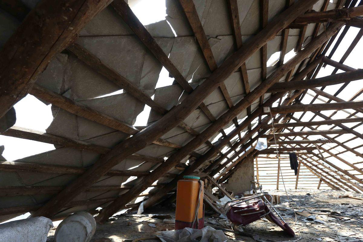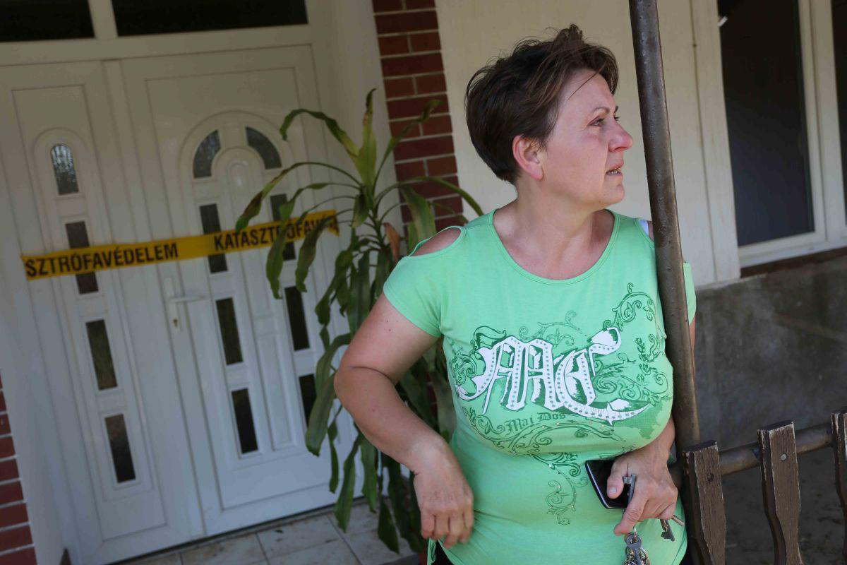 „Állandóan takarítok, mosom a szétázott ruháinkat, az udvaron szárítgatom a megmaradt szekrényeket. A katasztrófavédelem még azt sem akarta engedni, hogy a bútorokat kihozzuk, mert annyira veszélyesen megrogyott a ház.” A sárga kordonnal lezárt házba lépve halkan csak annyit mond: ez egy kétéves ajtó. „Csak ezt tudtuk kicserélni meg két ablakot, a többit később akartuk, ha újra összejön rá a pénz. A párommal ketten raktuk be. Mindig javítottunk, csinosítottunk valamit, ha tellett rá. Most mindent kezdhetünk a nulláról, de nincs miből. Biztosításunk nem volt.”
