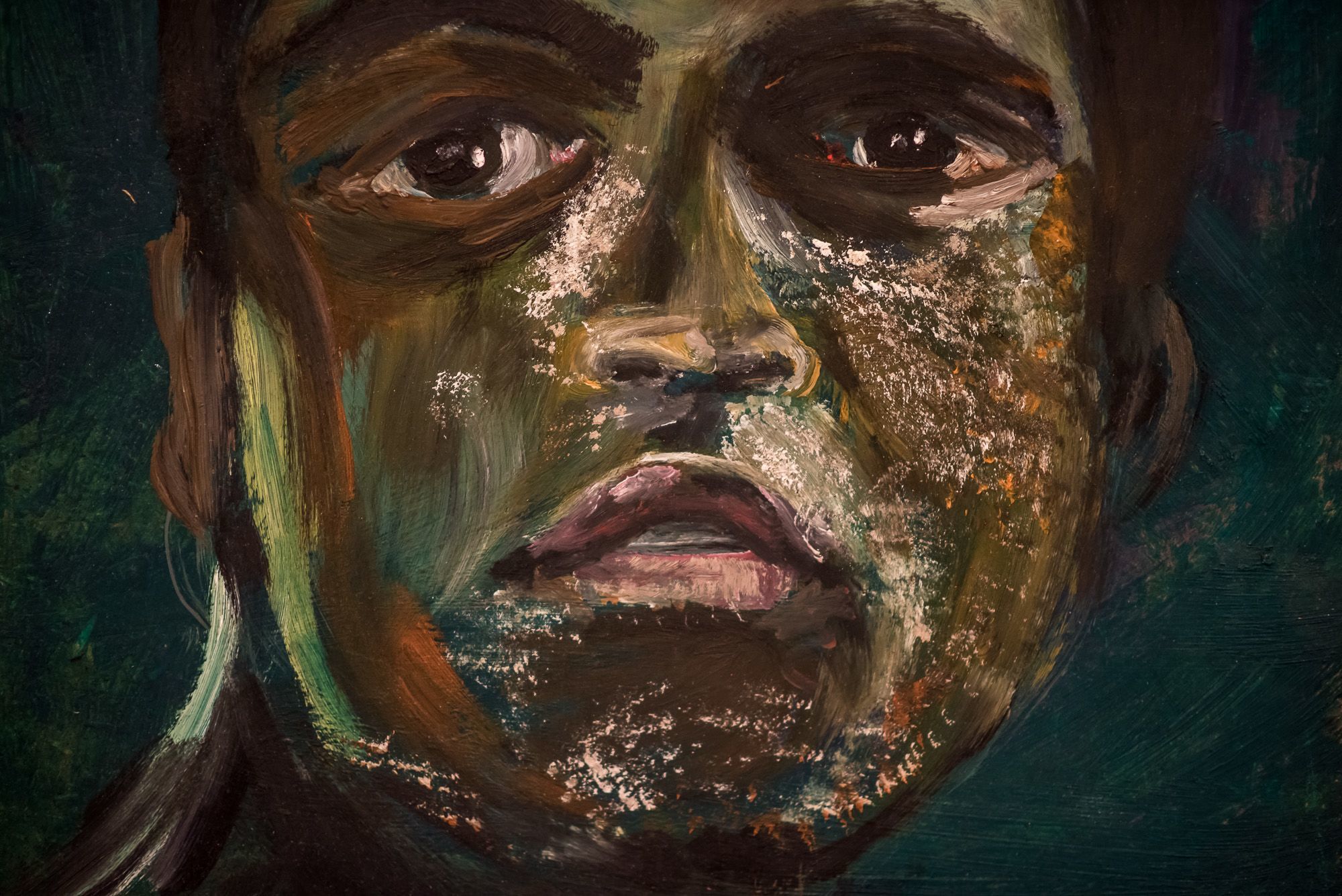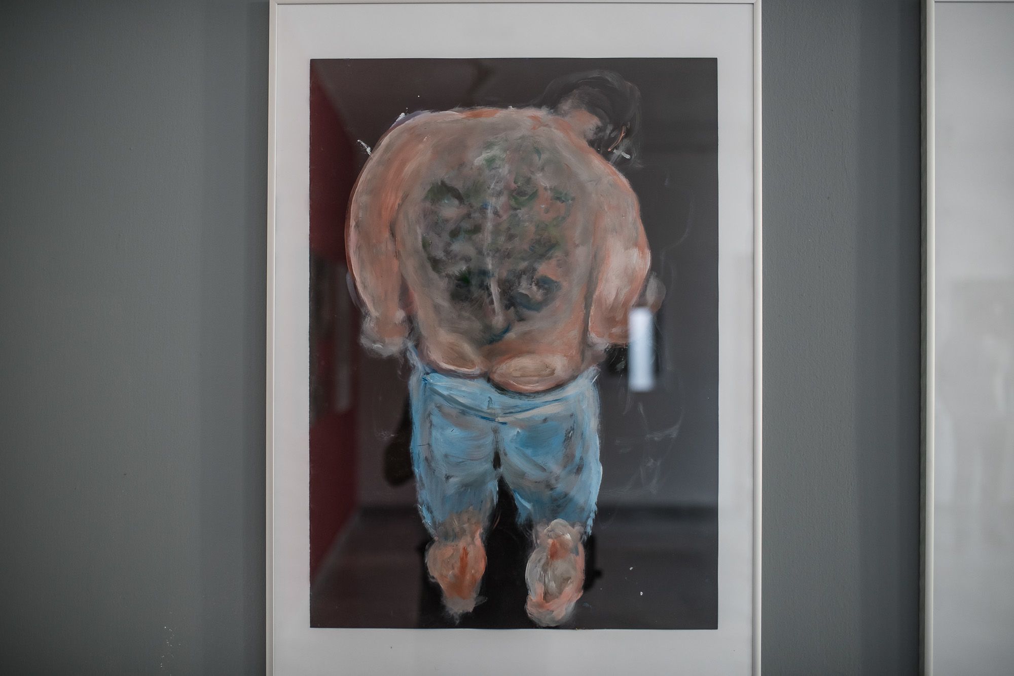 Ahhoz képest, hogy Bakos Tamás kiállítása a szentendrei művészbuli szenzációja, a brosúra egészen szűkszavú: ’76-ban született Nagykőrösön, egy ideig felszolgáló volt, majd 2000 és 2013 között hajléktalanként élt Budapesten. Közben festett is.