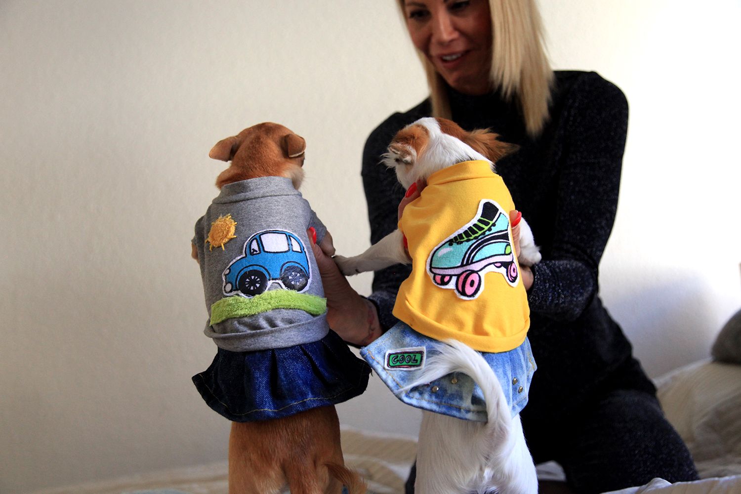 Ideje most már Lunának és Lencsinek is felöltöznie. Hiszen ma fánkozni mennek együtt. A polc tetején kinőtt ruhák sorakoznak, ezeket Zita el szokta vinni csivavatalálkozókra. Ott biztosan megtalálják didergő gazdájukat.