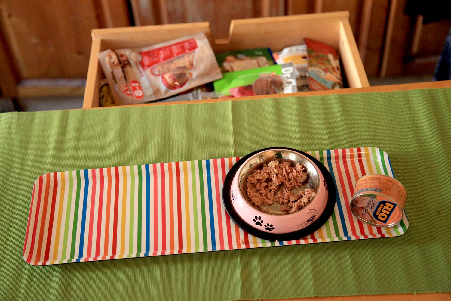 Az omega 3 zsírsavakban gazdag tonhalas reggeli mindhármuknak kijár. Ebben a lakásban ugyanis nincs különbség kétlábú és négylábú között. A kihúzott fiókban jutalomfalatok tucatjai várják, hogy kiosztásra kerüljenek.