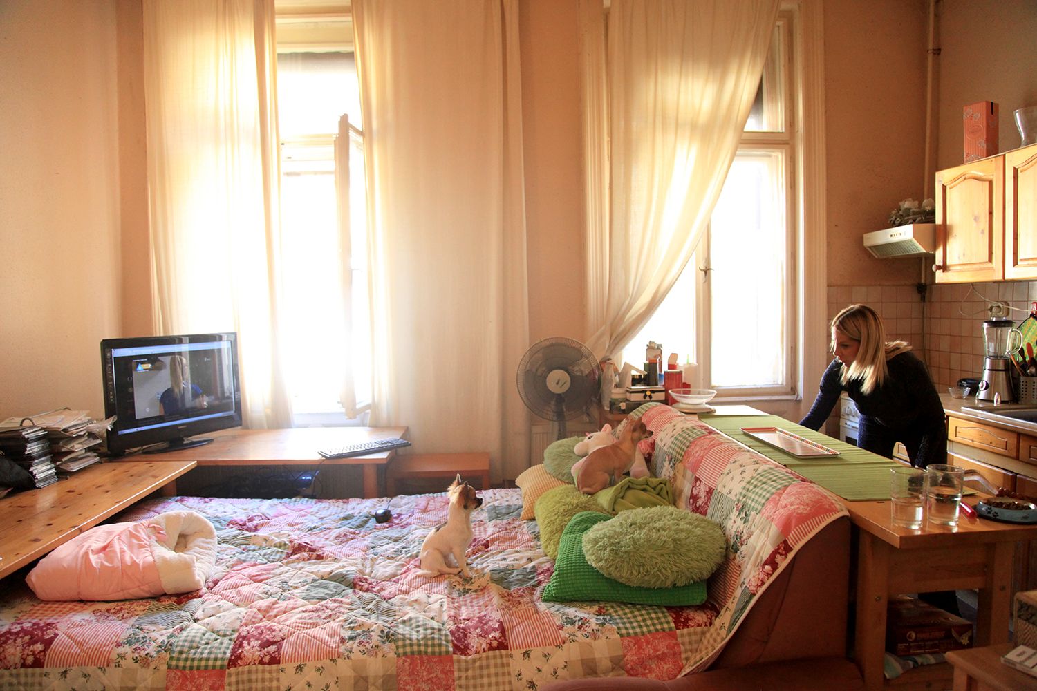 A tíz óra kissé korainak bizonyult a lányoknak fogadásomra. A belvárosi lakás ablakain behúzott függönyök árulkodnak arról, hogy az ágyban pizsamás lányok hancúroznak. Pedig a nap már igencsak próbálkozik betörni. Én mindenesetre rájuk törtem.