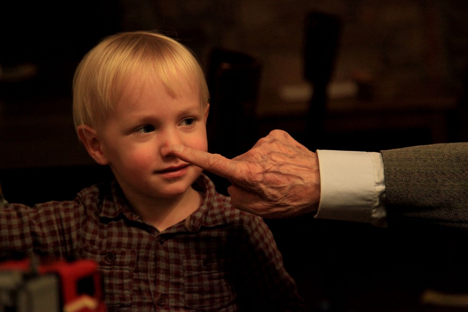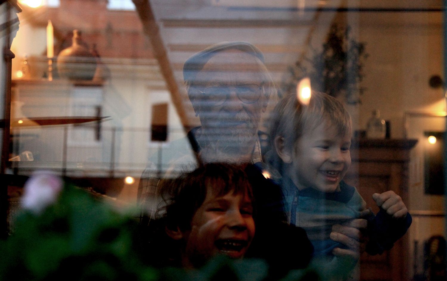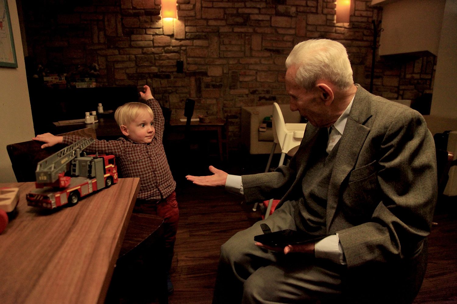 Janival, a kisebbik dédunokával még csak alakulóban a jó kapcsolat. Jani a dédpapával játszotta először azt, hogy valamit odaadott neki, azután visszakapta. Dédipapán kívül senkinek nem adja ki kezéből a kincseit, ez a gesztus csak neki szól.