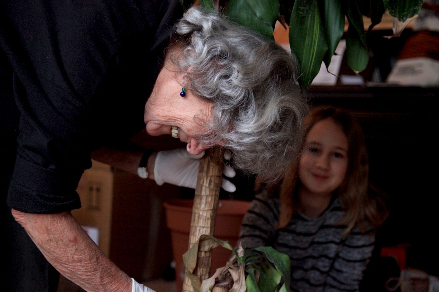 Ők Mami és Mimi. Egy belvárosi lakás kellős közepén kertészkednek éppen. Virágokat ültetnek át kisebb cserépből nagyobba. Maminak vidéken is van egy házikója, gyakorta vannak kettesben ott is. Olyankor is előszeretettel túrják a földet.