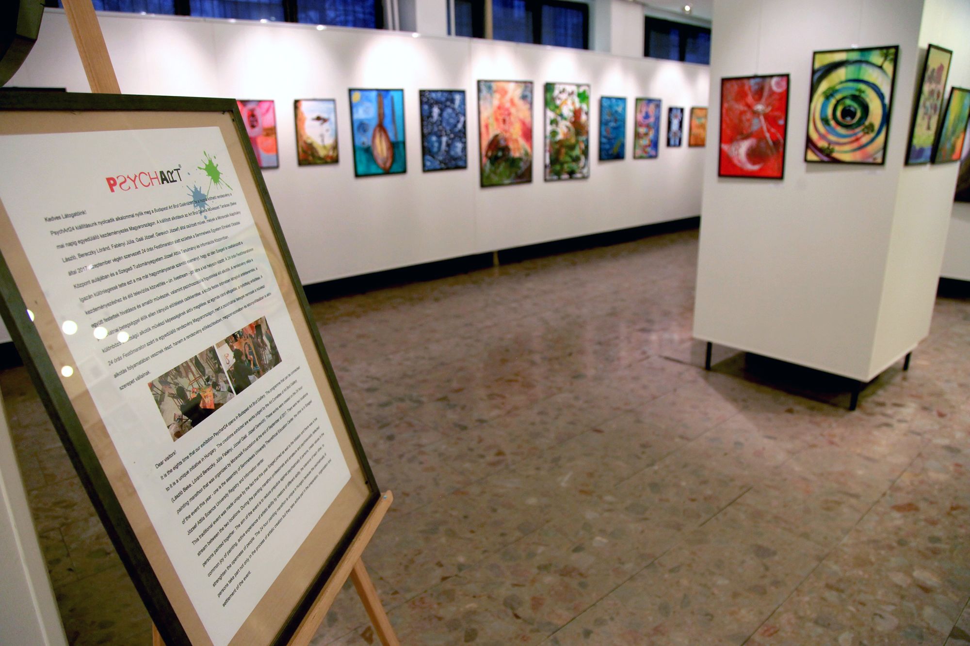 A Budapest Art Brut Galériában nemrégiben kiállítás nyílt. Az alkotók mind valamilyen pszichés betegségben szenvednek, képeiket egy 24 órás maratoni festés alkalmával készítették.