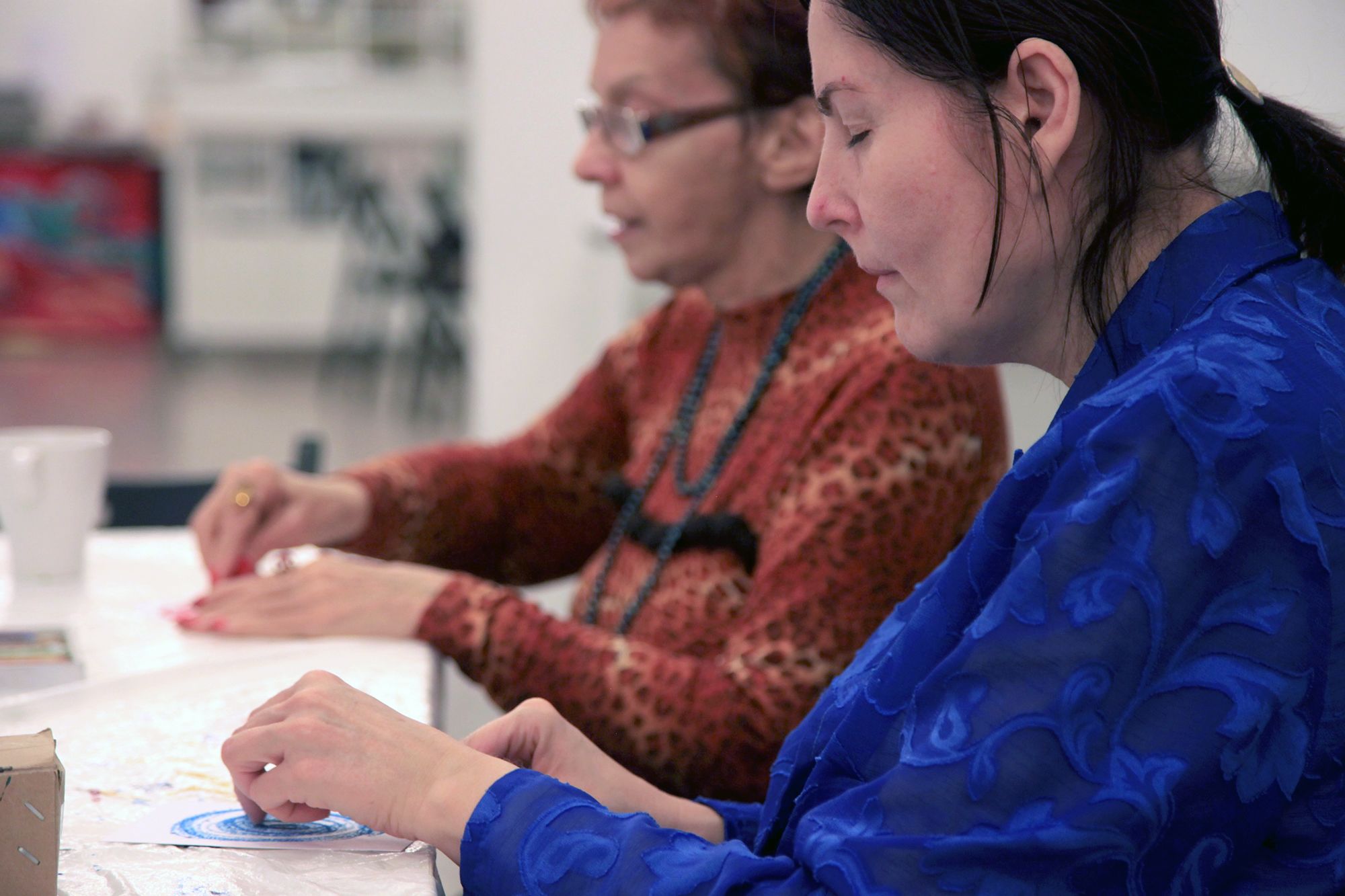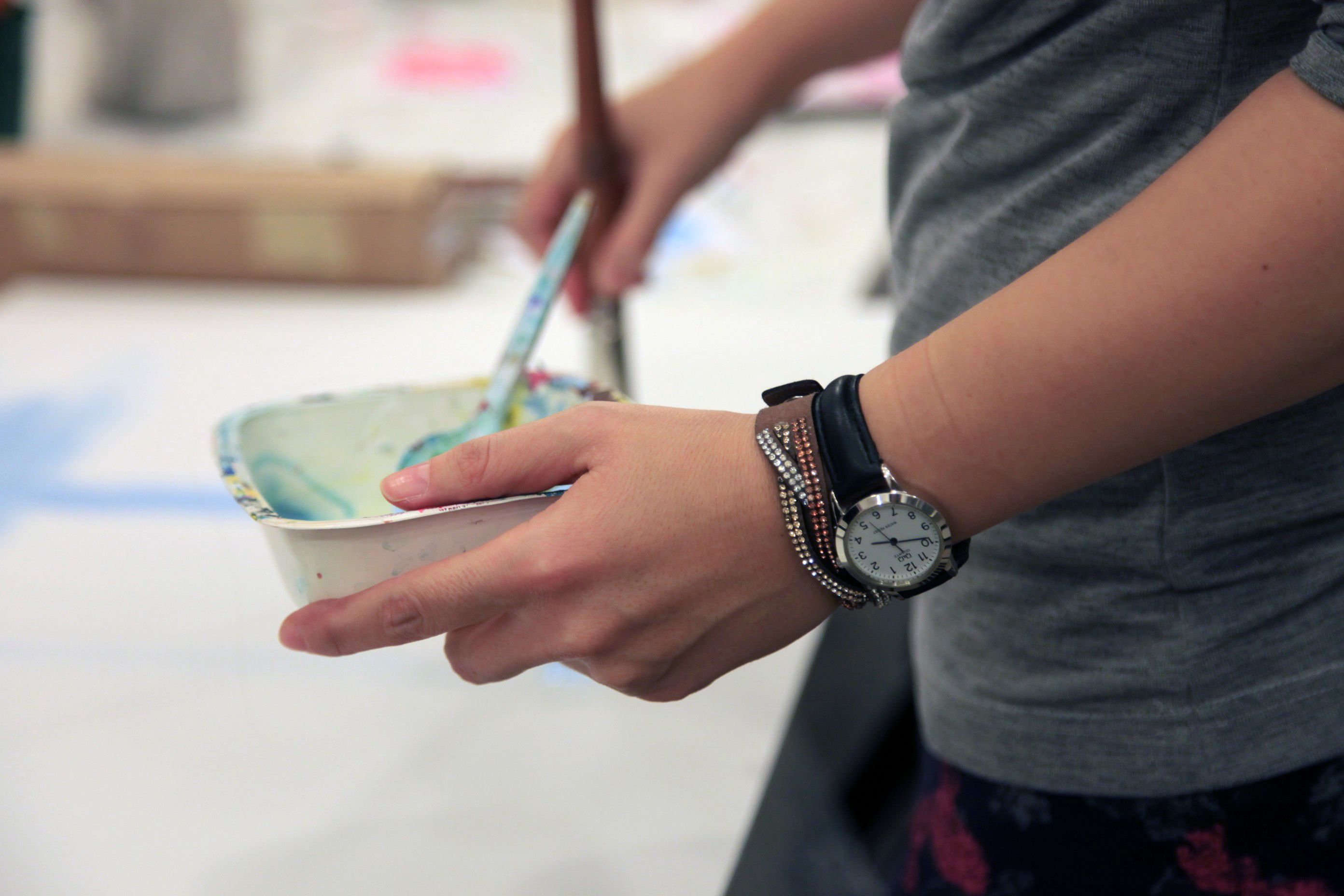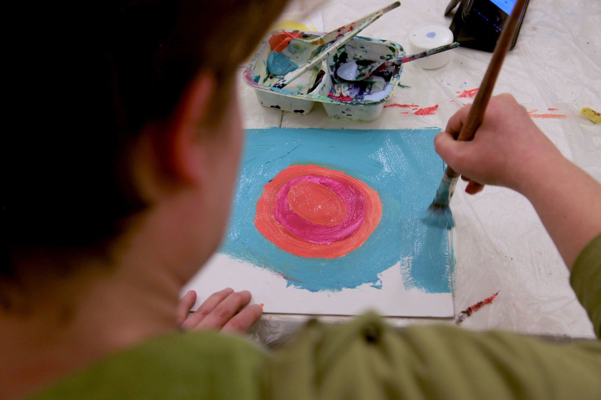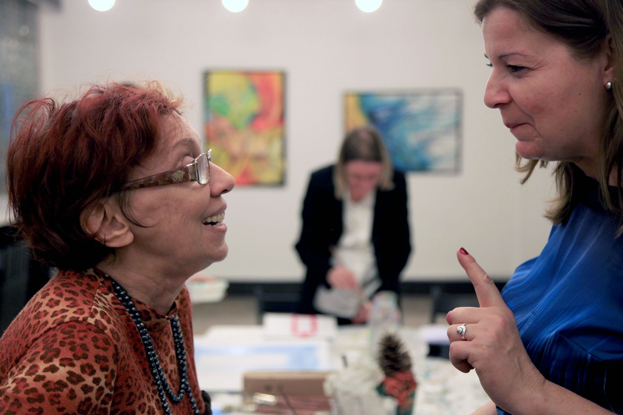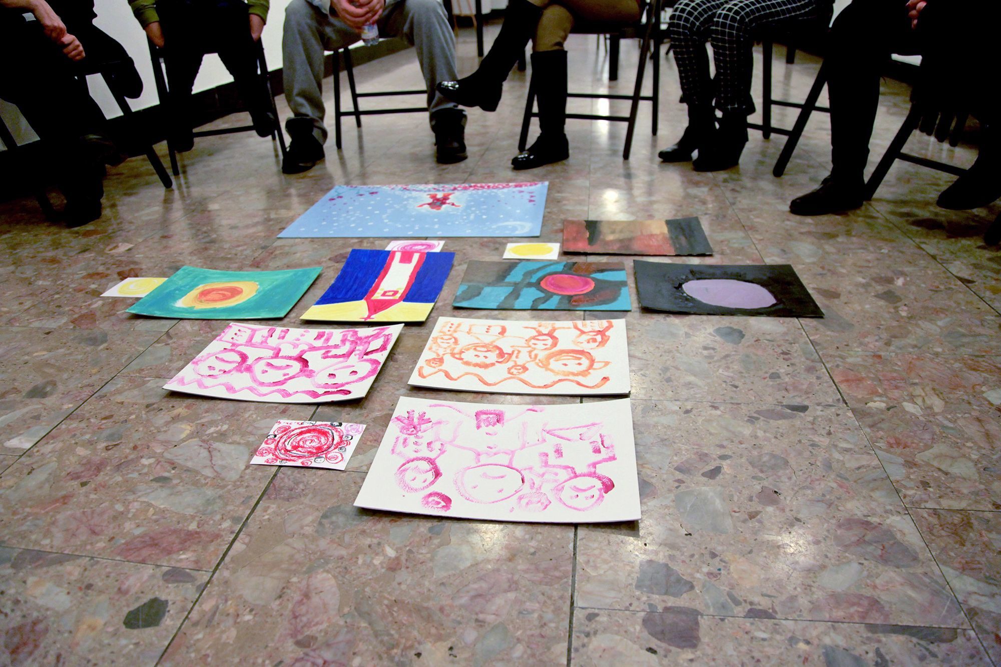 Kerényi Viktória vezeti a foglalkozást, türelemmel és odafigyeléssel beszélget mindenkivel. Miután kiosztja a festékeket, mindenkitől megkérdezi, milyen napja volt, hogy érkezett a foglalkozásra.