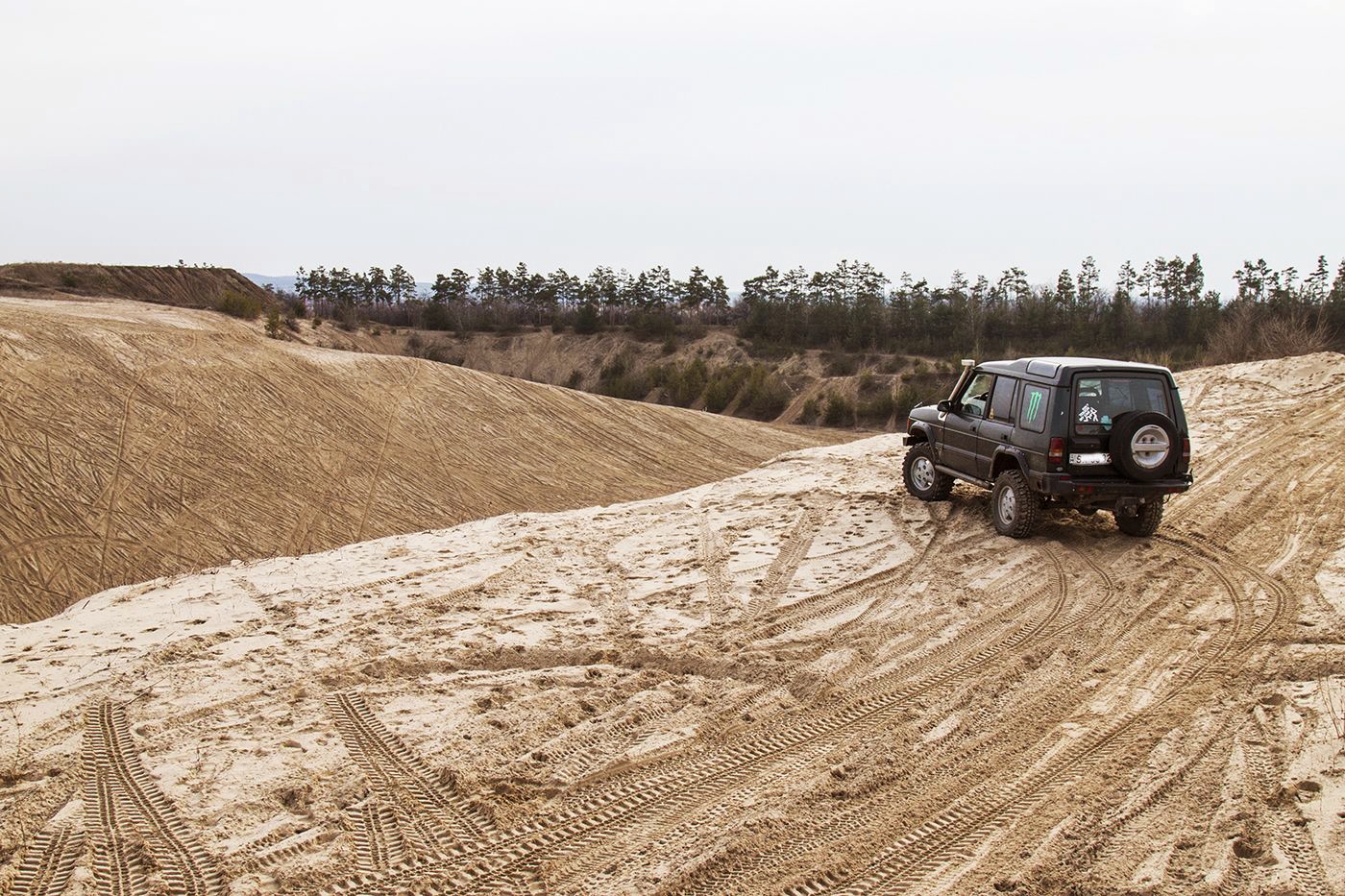 Alig tíz perccel később már a fóti homokbánya kellős közepén álltunk. Látványra kiköpött olyan ez a hely, mint egy minisivatag, amelynek a crossmotorosok és quadosok keréklenyomatai adnak izgalmas textúrát. A helyszín nemcsak számomra izgalmas, rendszeres forgatási helyszín; nem is olyan régen például az HBO épített itt fel egy komplett arab várost.