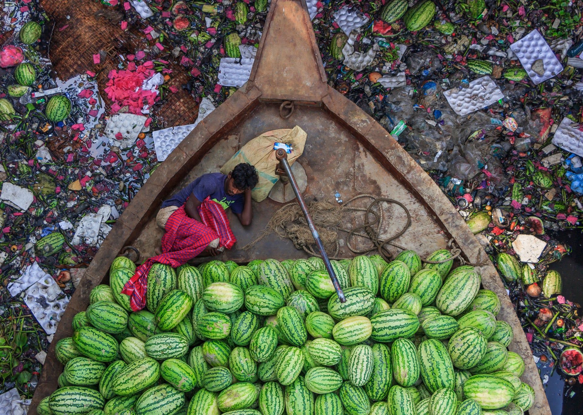 Dinnyeárus a szennyezett Buriganga folyón, Bangladesben (Fotó: Tapan Karmaker/2018 Ciwem environmental photographer of the year 2018)