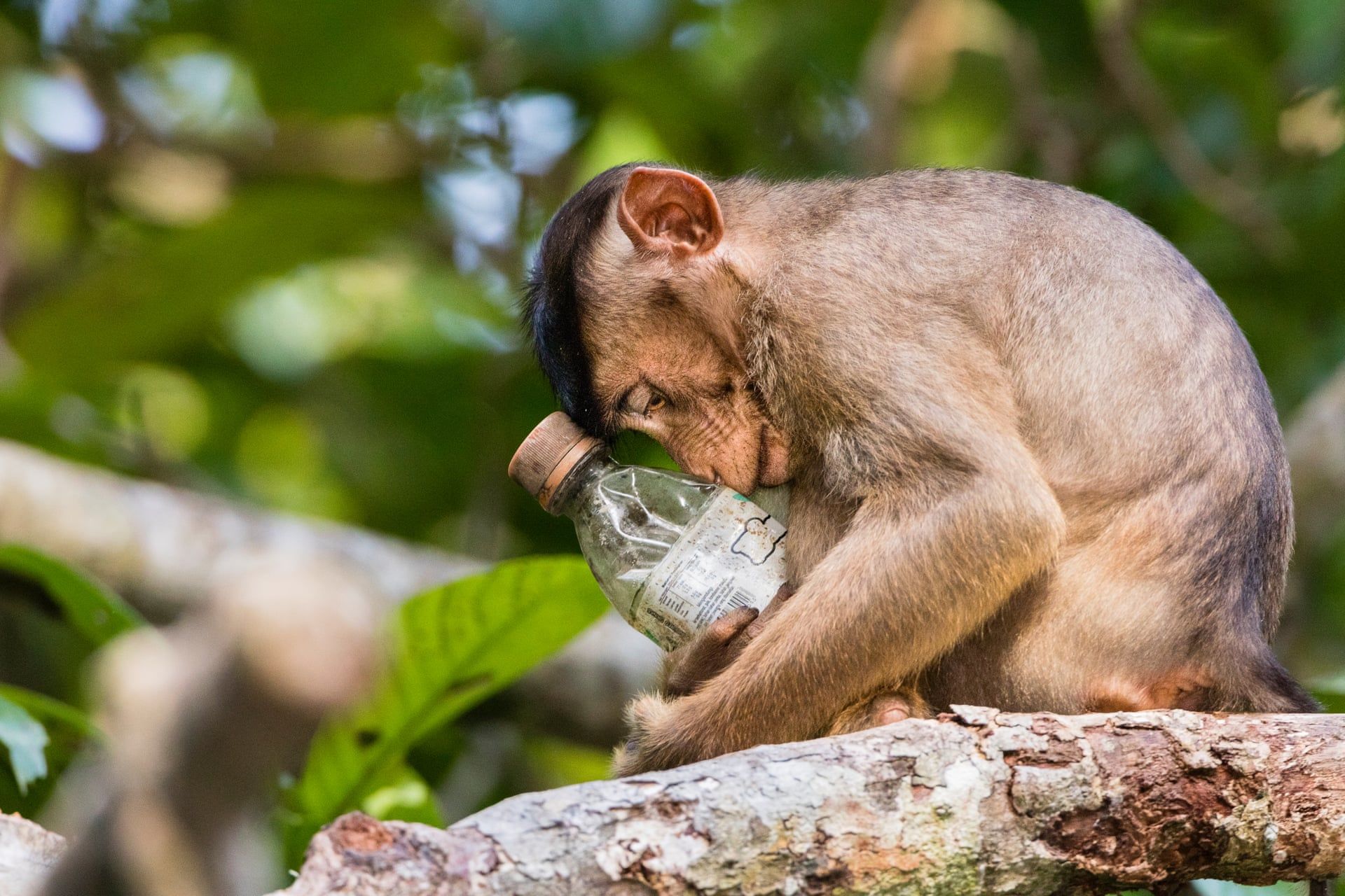 Egy borneói emsemakákó, műanyag szeméttel a kezében (Fotó: Calvin Ke/2018 Ciwem environmental photographer of the year 2018)