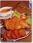 Az ürücombról a vastagabb faggyúréteget eltávolítjuk, megmossuk és hegyes késsel a combba szúrva fokhagymával megtűzdeljük, sózzuk. A vöröshagymát és a zöldségeket megtisztítjuk és felszeleteljük. A serpenyőben kiolvasztott szalonna zsírjában az előkészített hús minden oldalát pirosra sütjük. A serpenyőből kivesszük és egy lábasba áttesszük. A visszamaradó zsírban a vöröshagymát és a zöldségeket lepirítjuk, hozzáadjuk a paradicsompürét, amivel rozsdabarnára pirítjuk, majd megszórjuk liszttel és elkeverjük. A vörösbort és kevés vizet adva hozzá fűszerezzük (egész bors, babérlevél, kakukkfű) és az egészet a lábasban levő elősütött combra öntjük. Fedő alatt puhára pároljuk. Ha megpuhult, a párolóléből kivesszük, pihentetjük és felszeleteljük, a mártást átszűrjük, ha szükséges utánaízesítjük, felforraljuk. Tálaláskor a tálra öntjük az átszűrt mártást, rendezetten ráhelyezzük a felszeletelt húst. Köretként gombás rizst, burgonyakrokettet vagy bármilyen módon sütött burgonyaköretet és idénysalátát adhatunk.
