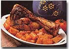 Tálaláskor a felszeletelt és a csontra visszahelyezett húsra tesszük a vele együtt sütött burgonyát és hagymát.
