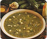 A fiatal cukkinit megmossuk, de ne hámozzuk meg, a kétharmad részét vékony karikákra szeleteljük, a megmaradt részt apró kockára, a vöröshagymát, a kaprot, petrezselyemzöldet és a tárkonyt finomra vágjuk. A húsleveskockát kb. egy liter vízben feloldjuk. A vöröshagymát a vajban üvegesre pároljuk, beletesszük a karikára vágott cukkinit, néhány percig fedő alatt pároljuk, majd hozzáöntjük a húslevest, és puhára főzzük, kb. tizenöt percig. Turmixgéppel egyneműsítjük a levest, majd hozzáadjuk a cukkinikockákat, és pár percig együtt főzzük. Közben a kaprot, a petrezselymet és a tárkonyt elkeverjük a tojássárgájával és a tejszínnel, majd a tűzről levett levesből néhány kanállal simára keverjük és állandó keverés mellett a forró leveshez öntjük. Felforralni már nem szabad. Ízlés szerint sóval, borssal és szerecsendióval ízesítjük.